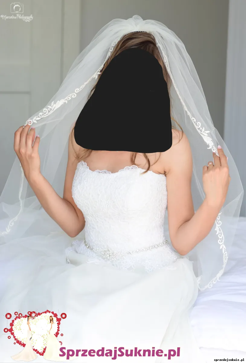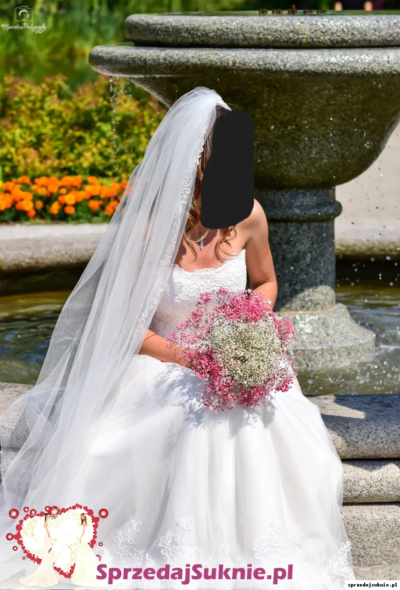 Na sprzedaż suknia ślubna, w stanie bardzo dobrym. W komplecie jest welon długości 2,3 m oraz krótszy 85cm.