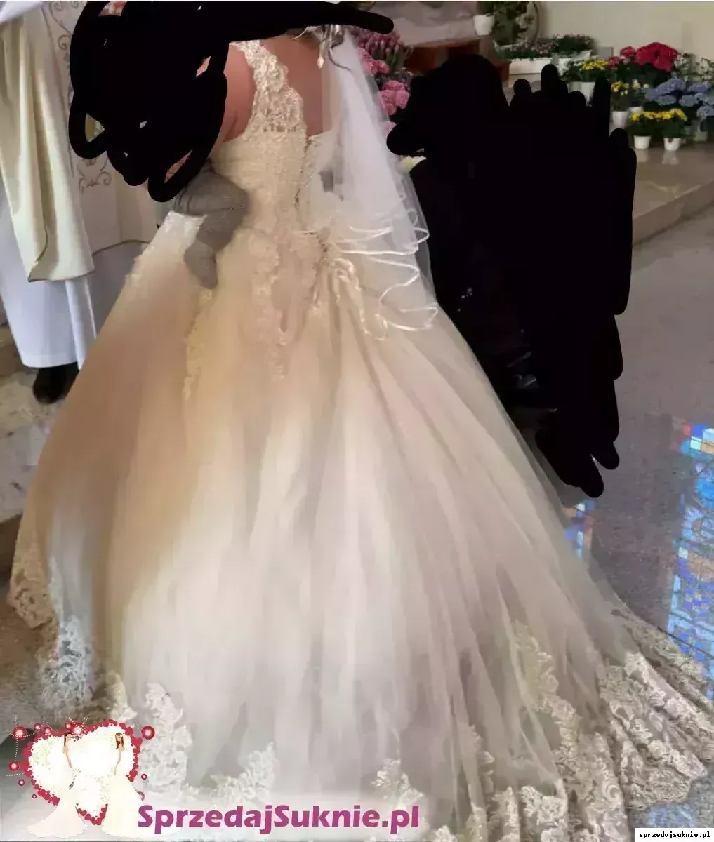 Suknia Ślubna typu Ksiezniczki z trenem rozmiar od 38 do 44
