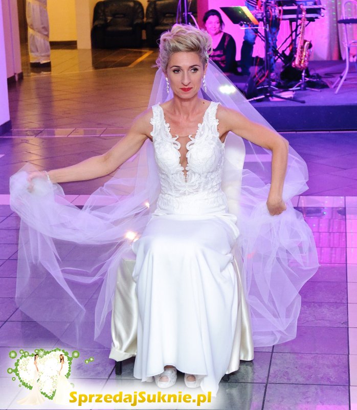 Sprzedam wyjątkową suknię ślubną z trenem (podpinany) zakupioną w salonie sukien ślubnych Diana w Warszawie. Suknia w swej prostocie jest bardzo kobieca i podkreśla wszystkie atuty figury. Sukienka założona tylko w dniu ślubu, nie była wykorzystana do sesji zdjęciowej. Wymiary: biust: 74 talia: 69 biodra: 79 kolor: ecru. Po tych wymiarach zrobiona była jeszcze jedna poprawka, także wymiary końcowe będą delikatnie mniejsze. Zostawiam buty, które również były założone tylko w dniu ślubu. Sukienkę można zobaczyć na Bemowie. Więcej zdjęć na priv. Polecam z czystym sumieniem.