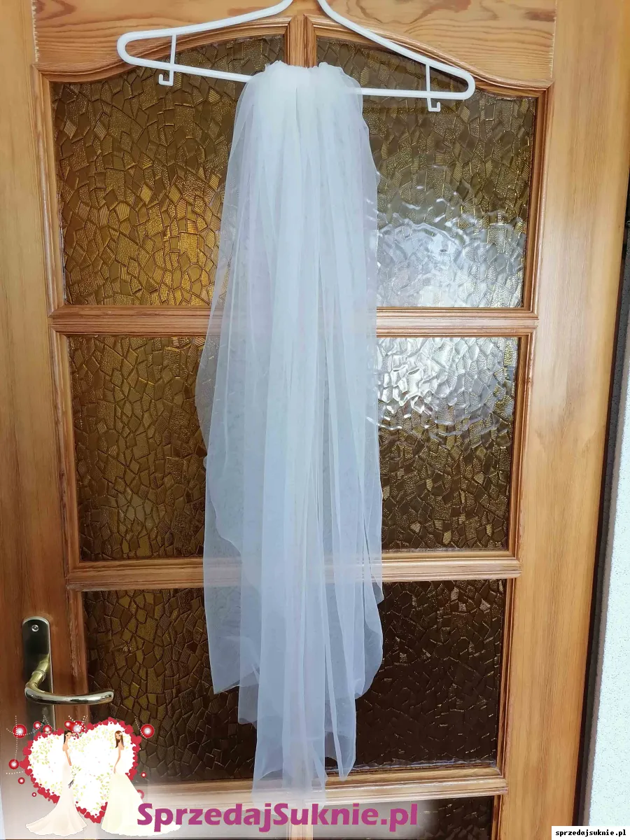 Gładki krótki welon ślubny w kolorze śmietankowym, ecru