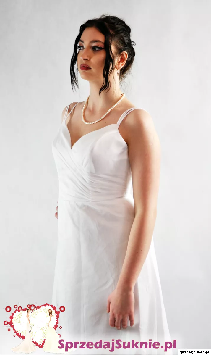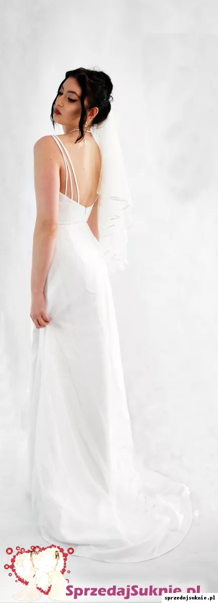 Jej prosty, minimalistyczny krój podkreśla naturalne piękno, a wyjątkowe, potrójne ramiączka dodają jej subtelnego, lecz intrygującego charakteru. Wykonana z gładkiego, wysokiej jakości materiału, delikatnie opływa sylwetkę, tworząc ponadczasowy i elegancki look. Suknia doskonale łączy w sobie klasykę z delikatną nutą nowoczesności.