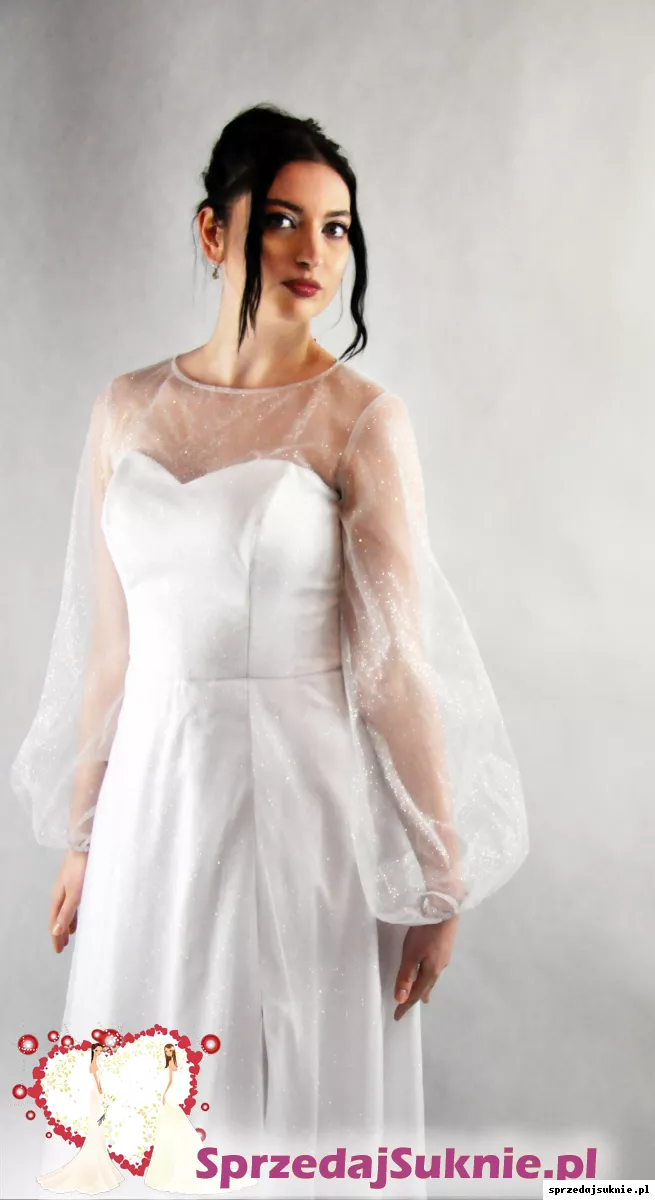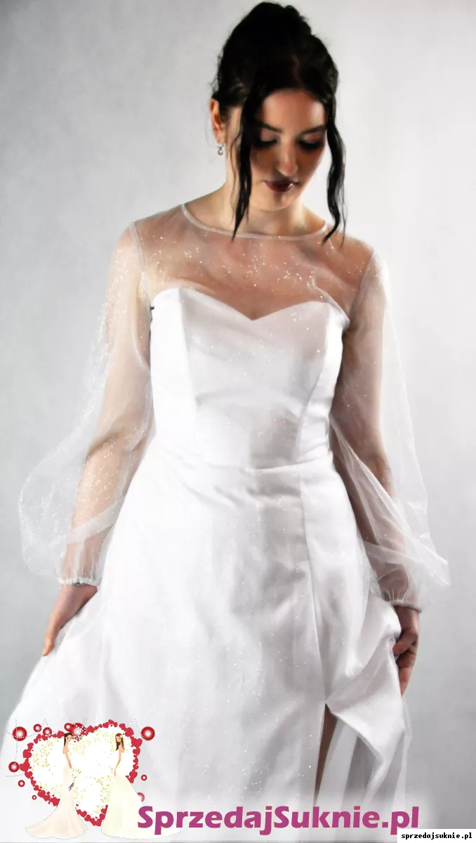 Satynowa suknia z błyszczącym brokatowym tiulem na wierzchniej warstwie.