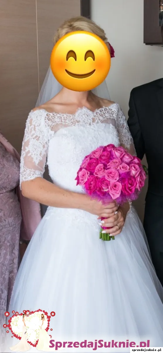Suknia ślubna, wiązany gorset dzięki czemu dopasowuje się do sylwetki. Pasuje na rozmiar 36-40. Szyta na wzrost 164 cm plus 6 cm szpilki. spokojnie można skrócić. Suknia wyprana w prali chemicznej. Może być z odkrytymi ramionami lub z pięknym bolerkiem z koronki, zapinanym na plecach. Do sukni dorzucam welon i bolerko. Możliwość przymierzenia w Kielcach.