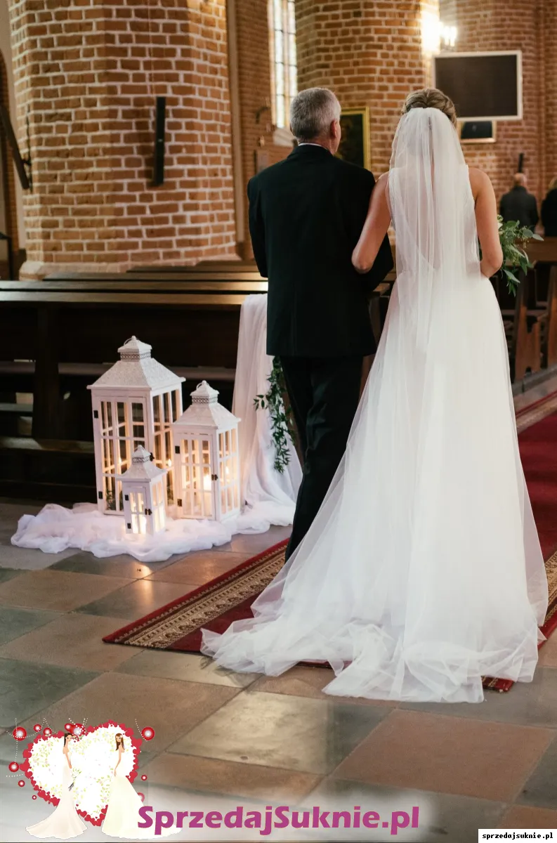 dodatkowo – dopinany, na koralikowym pasku, długi tren z tiulu ( miałam go tylko w kościele i chwilkę na sali weselnej)