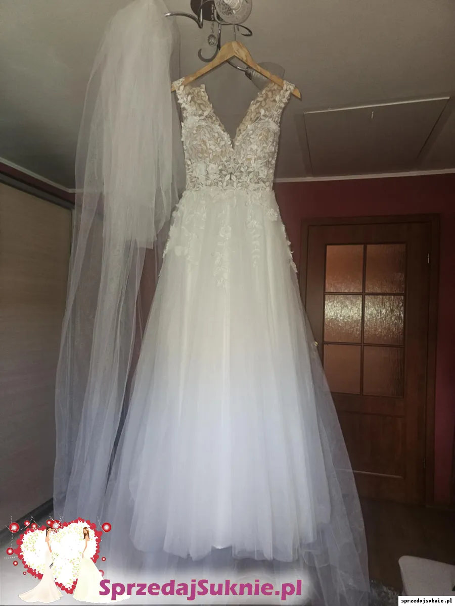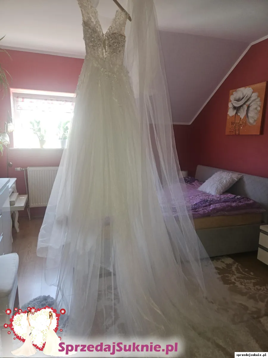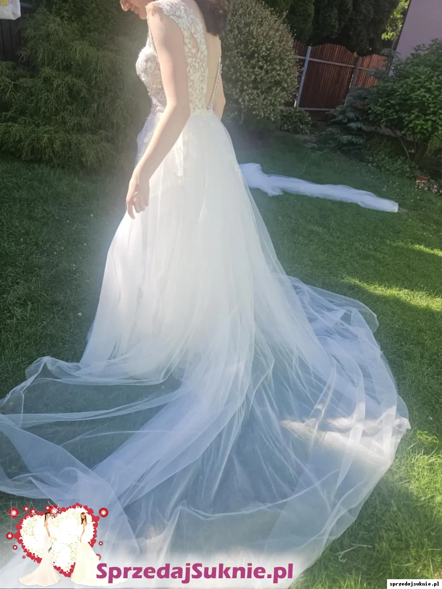 Suknia ślubna z salonu Destiny litera A rozmiar 36 listki + tren i welony.