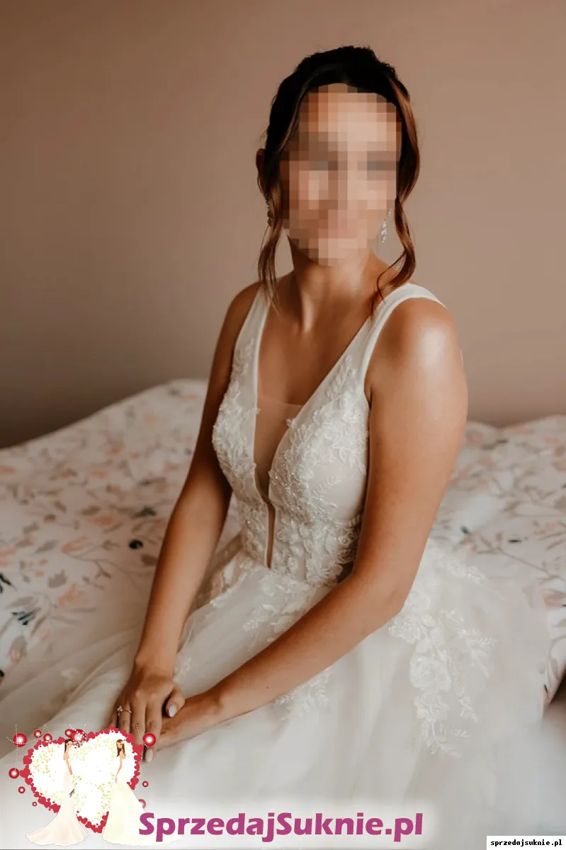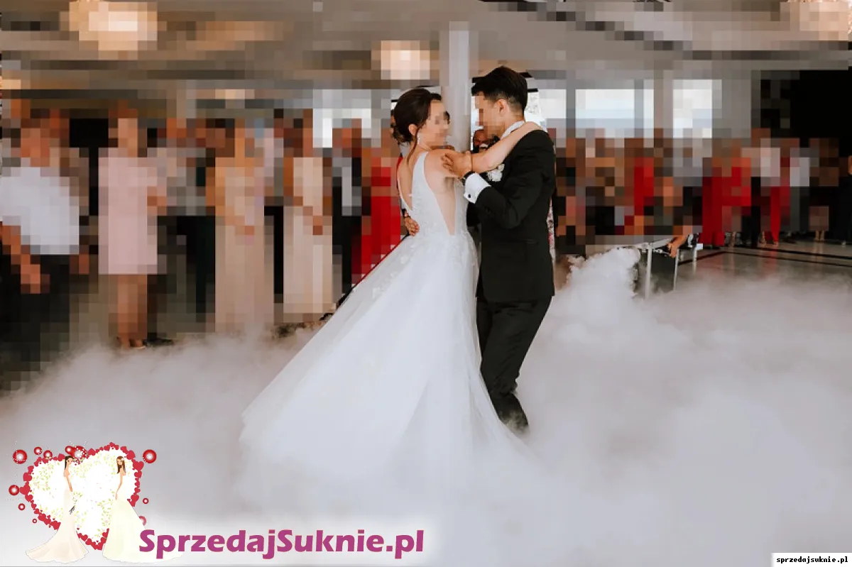 Suknia Ślubna rozm. S uszyta na 165cm wzrostu + 6cm obcas.