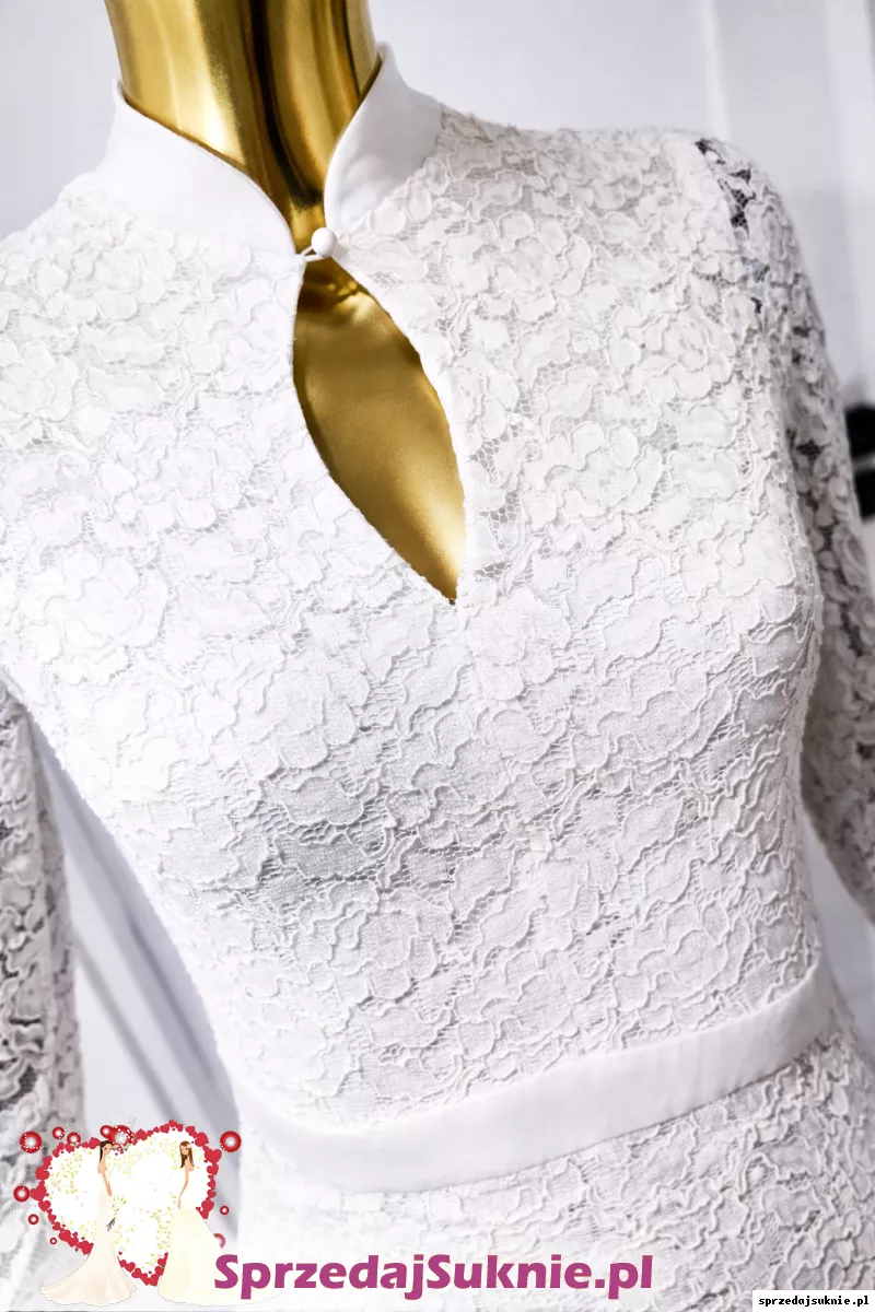 Piękna koronkowa suknia swing krój syrenka łezka na dekolcie plus satynowe lamówki kolor złamanej bieli nałożona jedynie dobry zdjęć