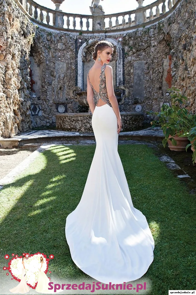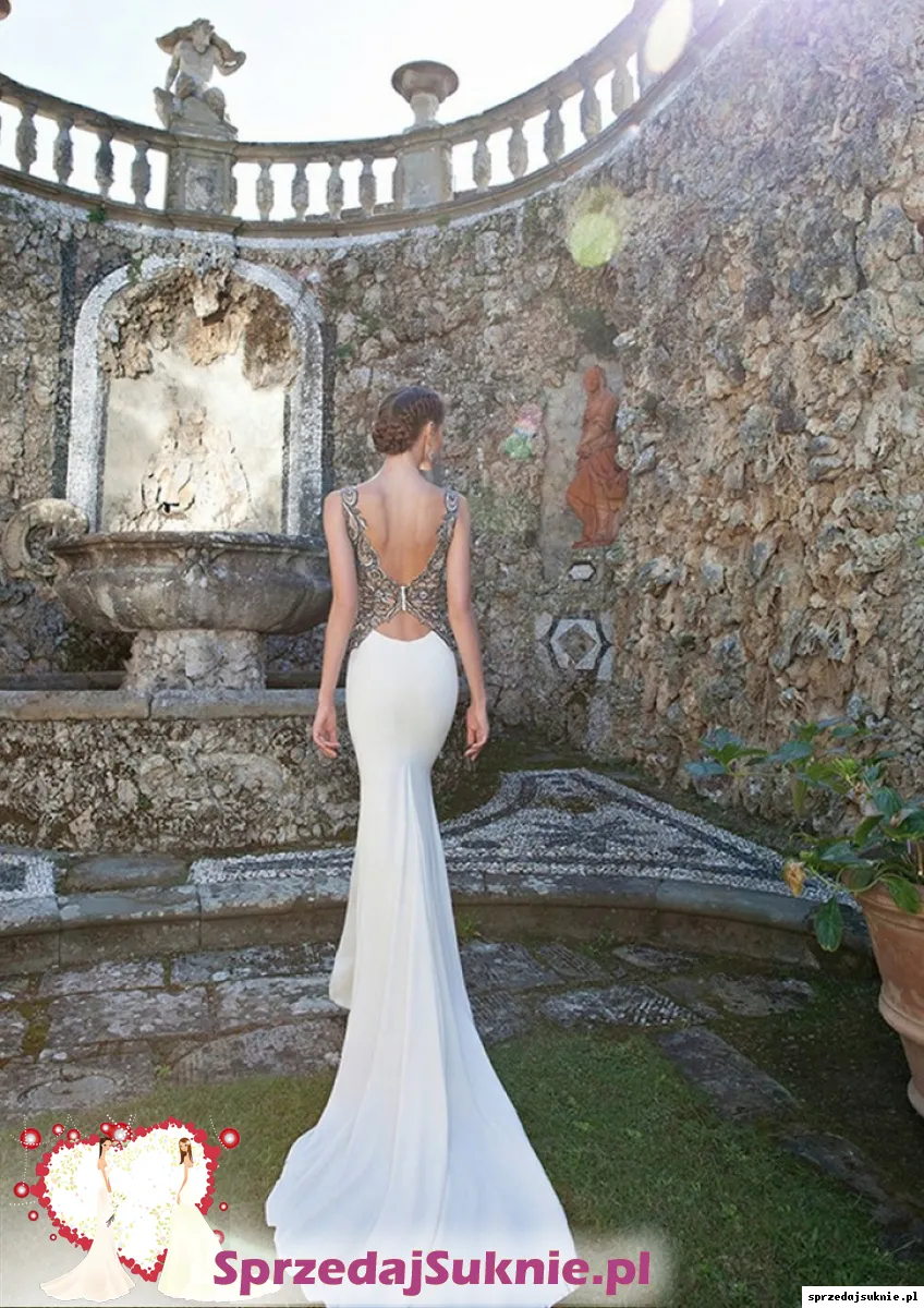 Suknia ślubna, wieczorowa lub koktajlowa, zaprojektowana przez jednego z najbardziej porządanych projektantów gwiazd Tarik'a Ediz. Uosobienie elegancji, model 92567, noszony na czerwonym dywanie. Suknia pięknie podkreśla sylwetkę. Koronkowa, ręcznie wyszywana aplikacja z koralików i cyrkonii robi niesamowie wrażenie pod wpływem światła. Suknia z podpinanym trenem. Piękna, elegancka, ponadczasowa na wiele okazji. Rozmiar S. Dopasowana do wzrostu 168 (waga ok 54kg) plus 12 cm szpilki, biust miseczka pełne C, ale jest tez dobra dla wzrostu 174 + 11cm szpilki przy biuście nie pełne C i węższych biodrach. Stan bardzo dobry, wlasnie wróciła z pralni. Cena zakupu 4590 zł. Kupiona w salonie sukien ślubnych Madonna w Warszawie. Możliwość przymierzenia na terenie Warszawy.