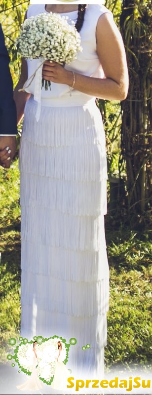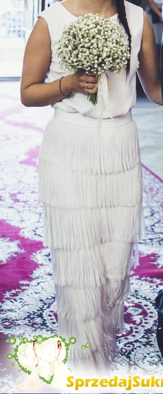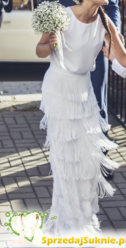 Dół sukni zrobiony jest z frędzli, dzięki czemu suknia jest niepowtarzalna.