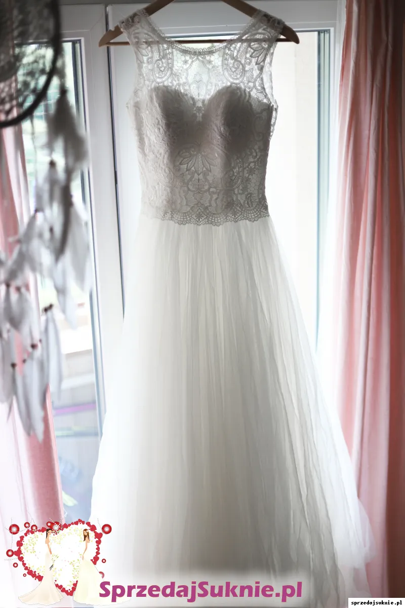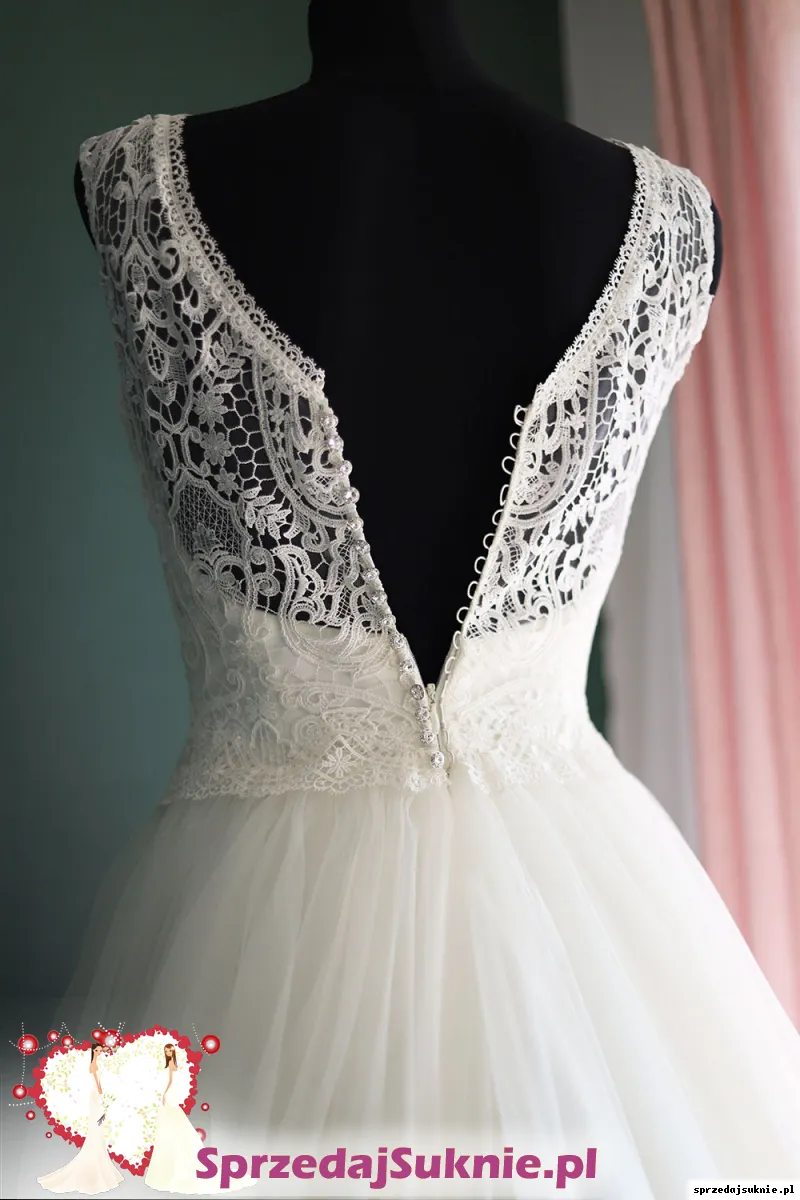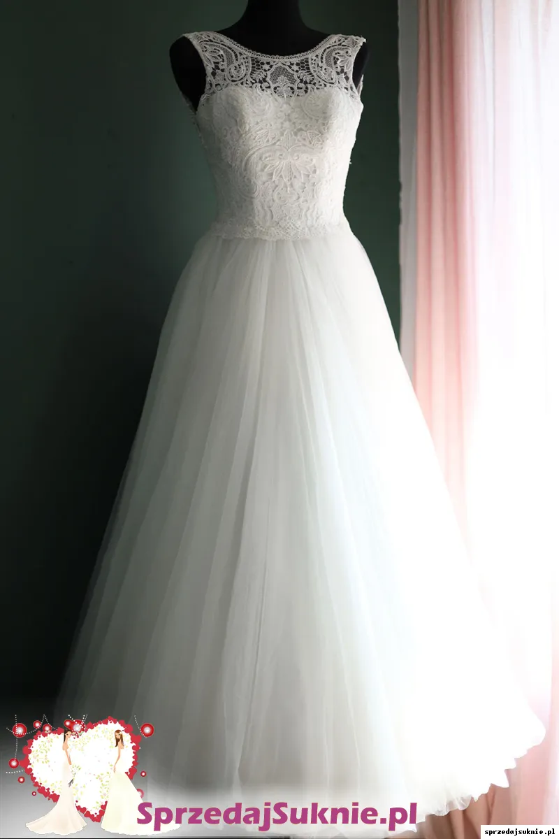 Suknia ślubna 36 s koronkowa biała dekolt plecy Afrodyta Mona Liza