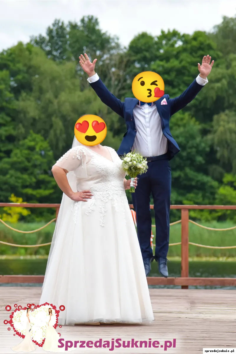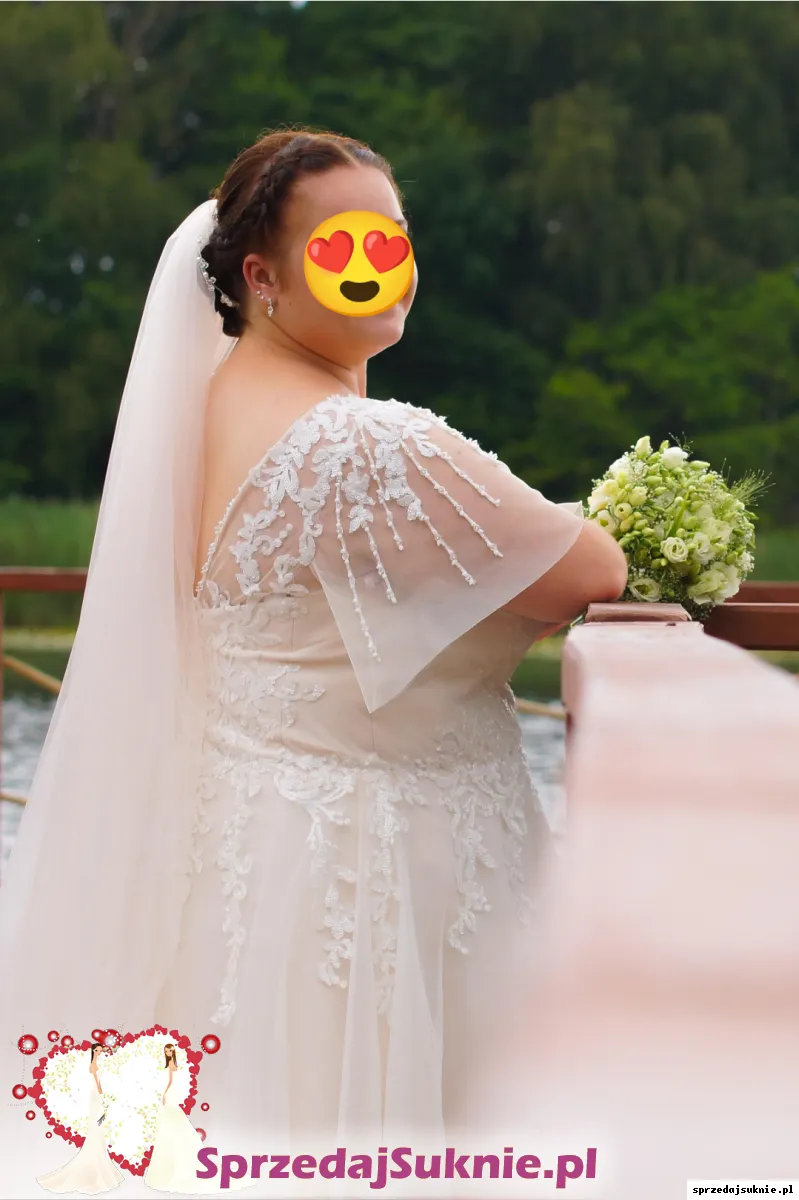 Witam, oferuje na sprzedaż piękną suknie ślubną kolor szampan, zakupiona w salonie sukien ślubnych Agnes z kolekcji plus size. Suknia posiada wiązany gorset regulowany od rozmiaru 48 do 52.