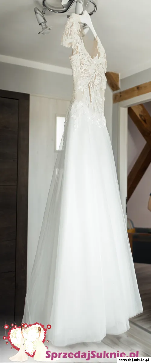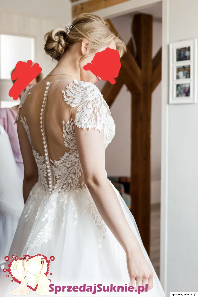 Suknia założona tylko w dniu ślubu, jest po praniu. Wzrost 162 + obcas 5 cm.