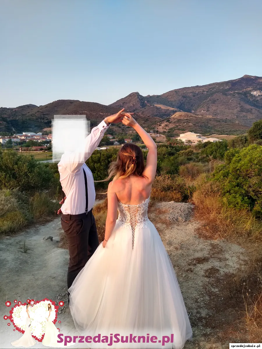 Suknia z kolekcji by Olala Annais Bridal, zakupiona w salonie Adriana Reina w Szczecinie w 2020r. Uwag臋 przyci膮ga jej zdobiony gorset, wi膮zany z ty艂u co umo偶liwia dopasowanie do sylwetki. Suknia jest w rozmiarze XS dla niskiej i drobnej osoby uszyta na 153 cm + 10 cm obcas.