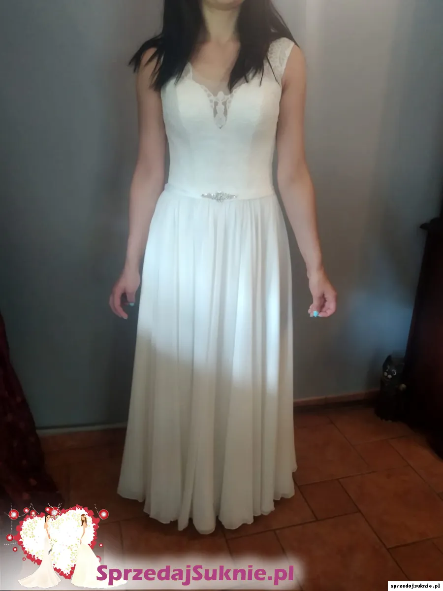 Sprzedam piękną suknię ślubną w kolorze śmietankowej bieli, rozmiaru 36 (małe 38).