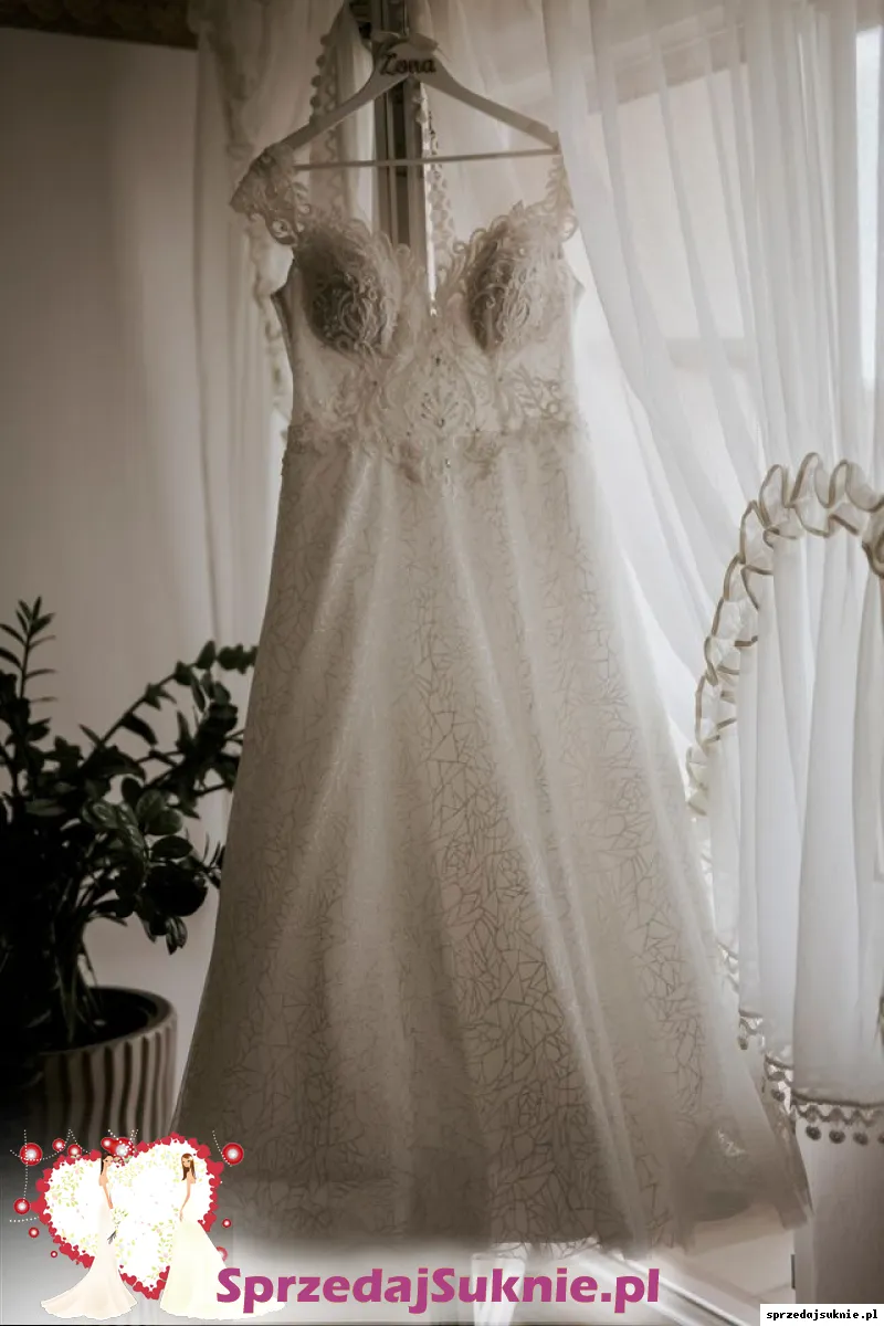 Model sukni MELODY w kolorze ecru, suknia błyszczy się przepięknie.