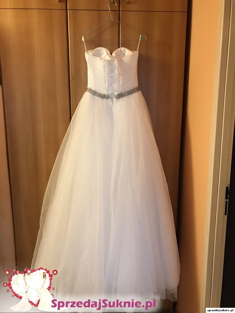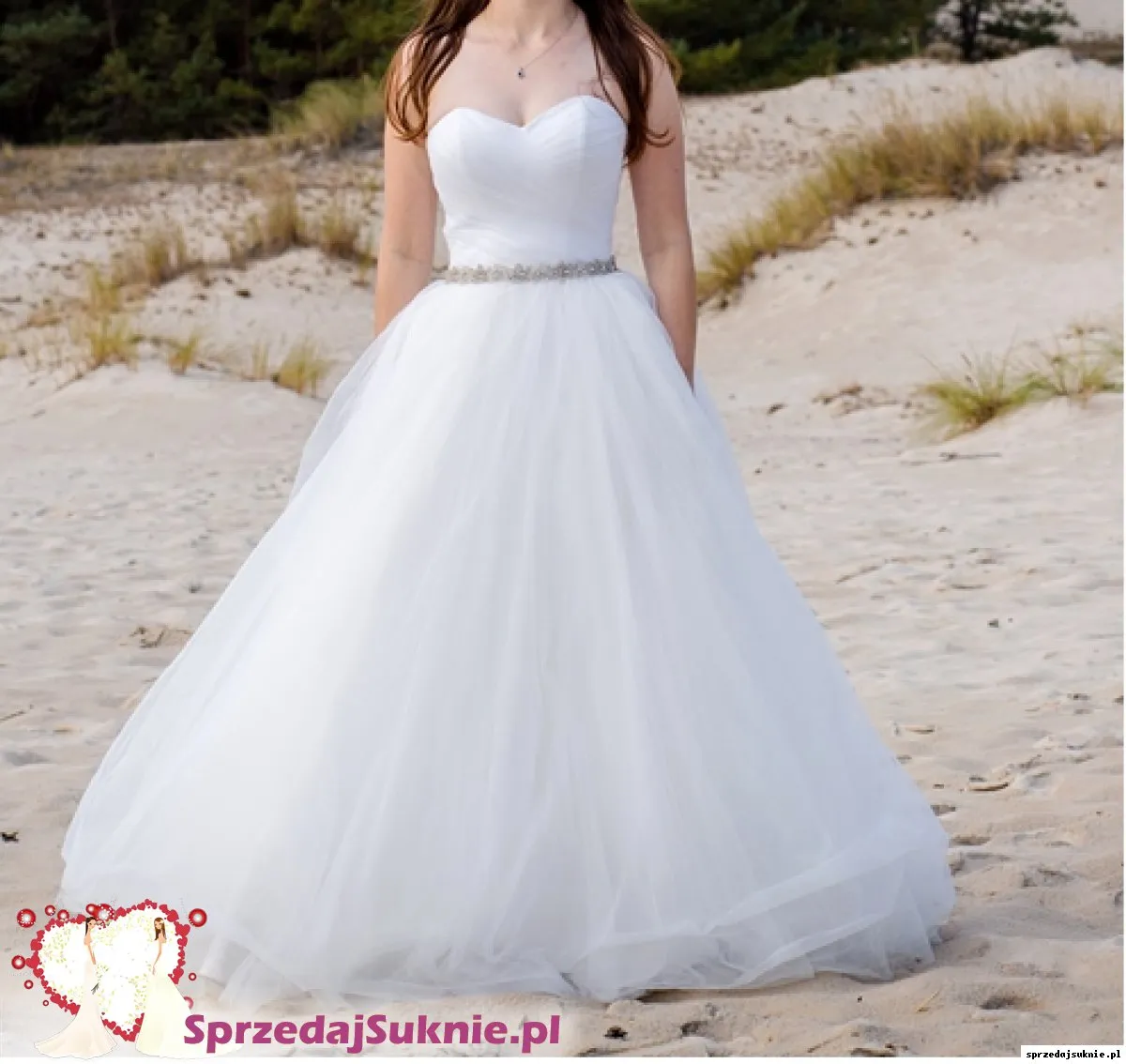 Suknia w stylu Princessa, bez ramiączek, dekolt w kształcie serca.