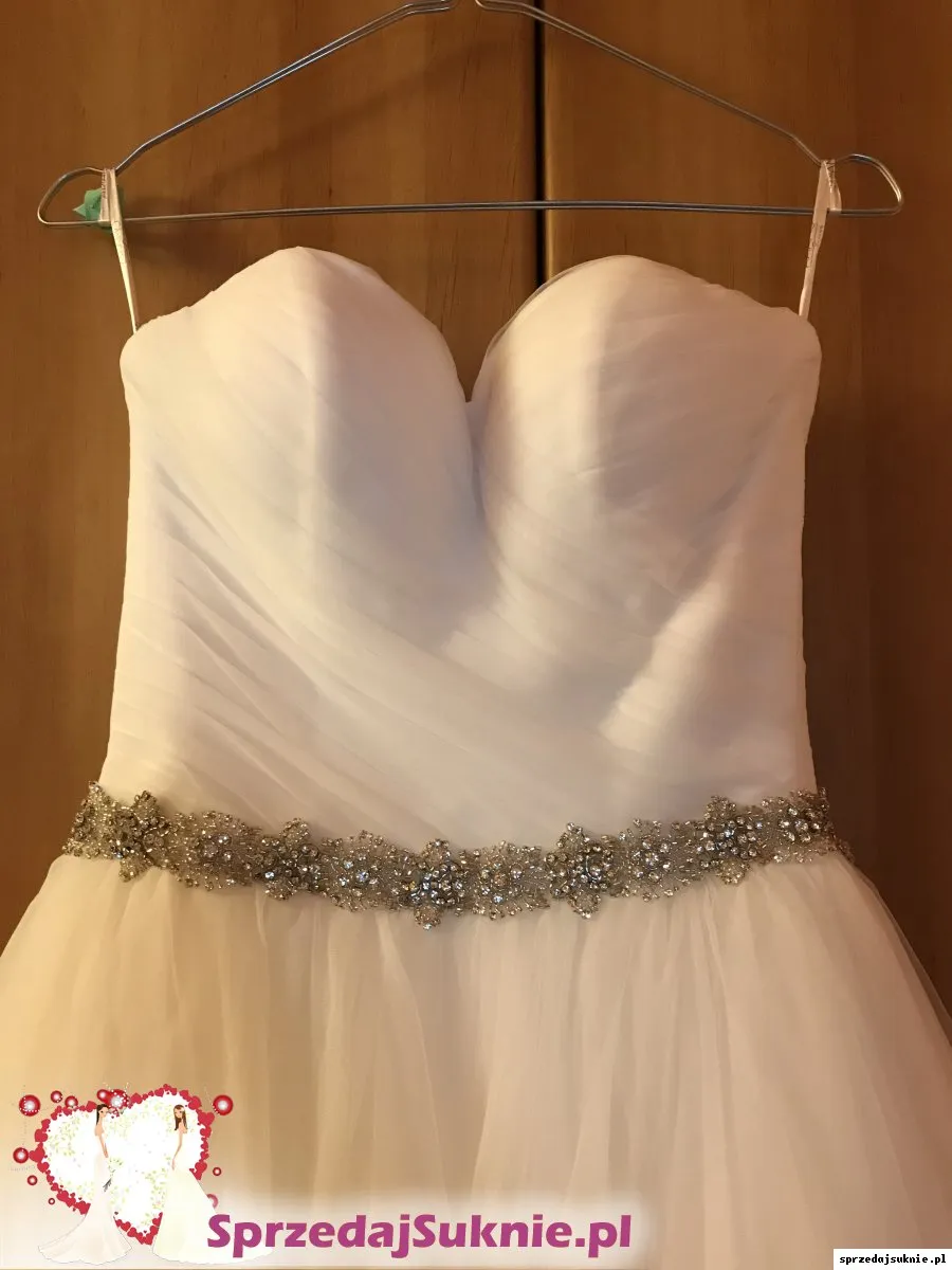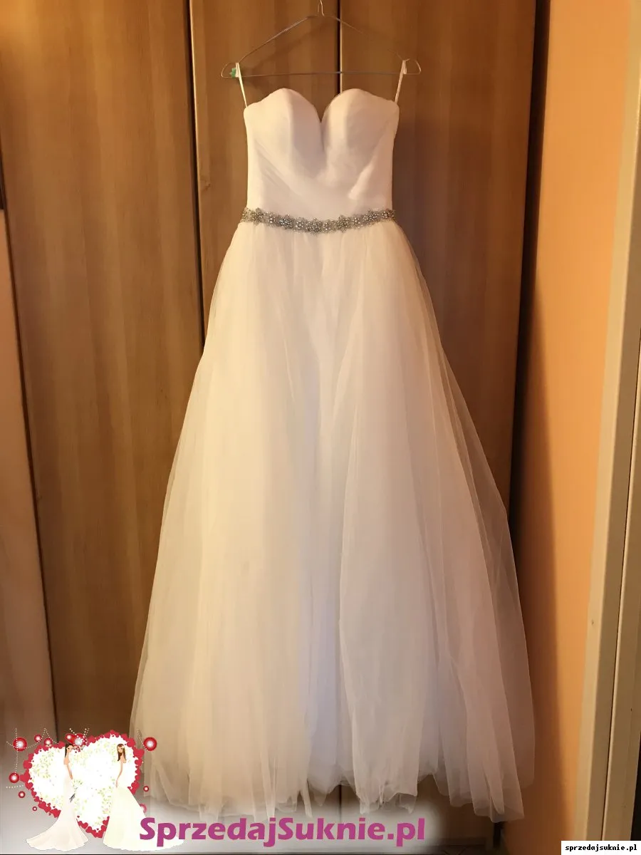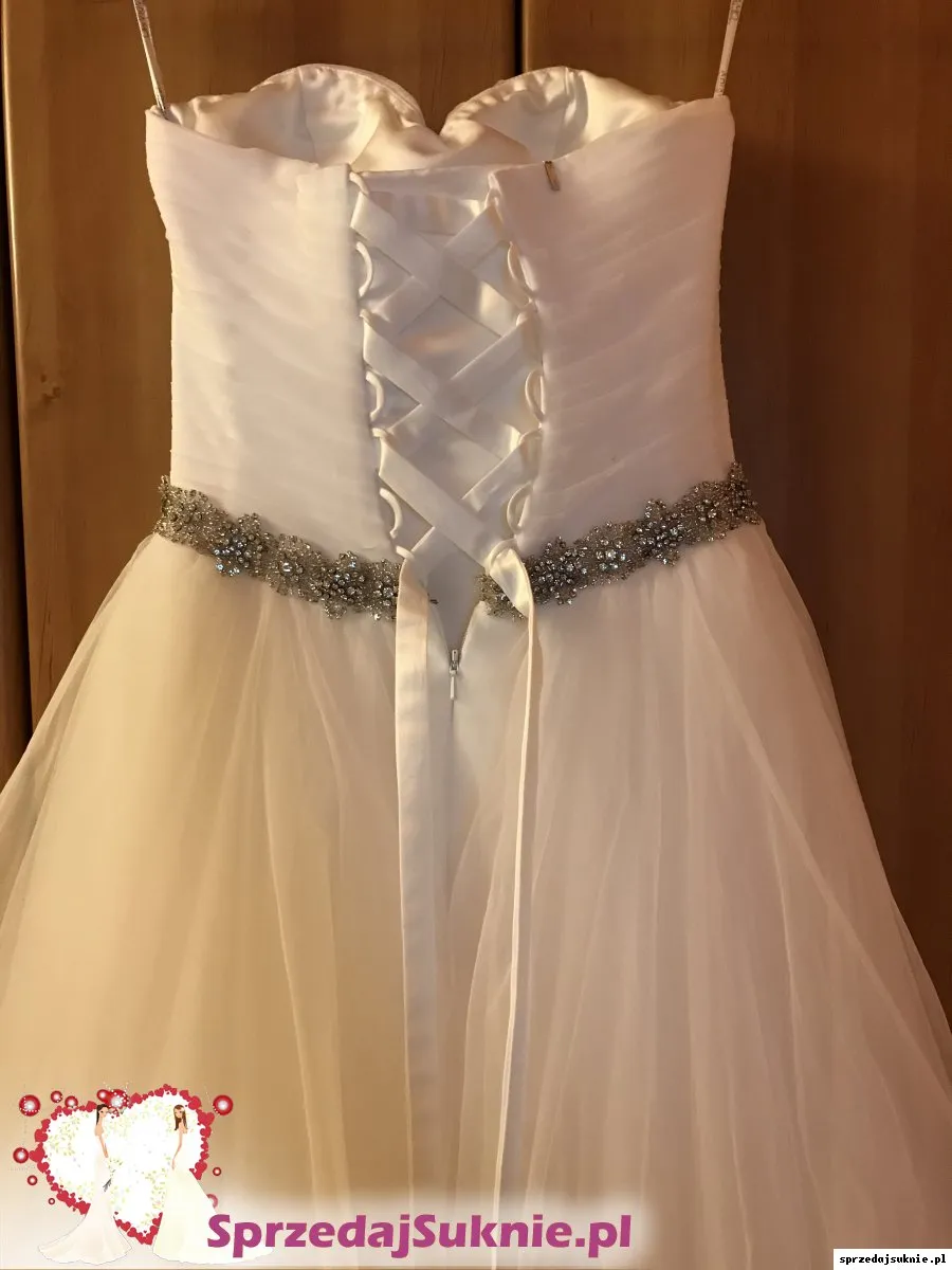 Mam na sprzedaż suknię ślubną model Ariamo Edin, rozmiar 36. Posiada gorset pleciony z tyłu (rozmiar może być regulowany).