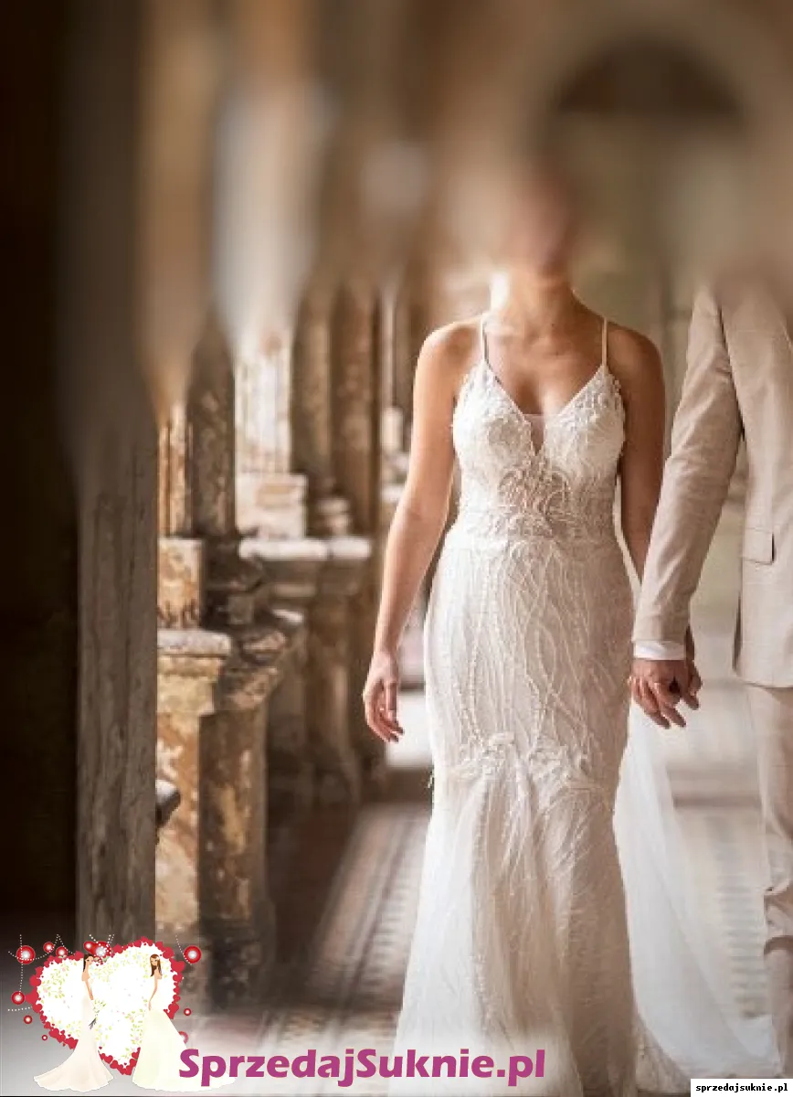 Suknia ślubna rybka / syrena, kolor ivory, rozmiar 36, z salonu Classa / boho rustykalna koronka