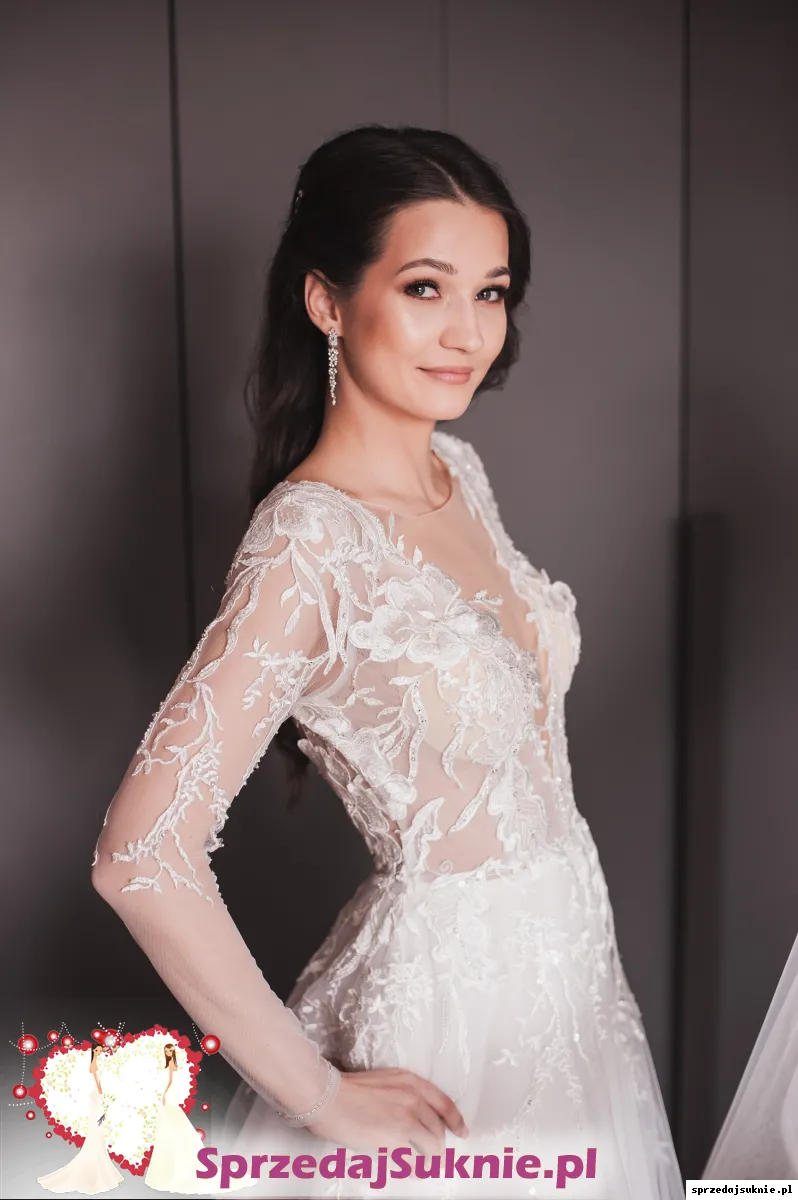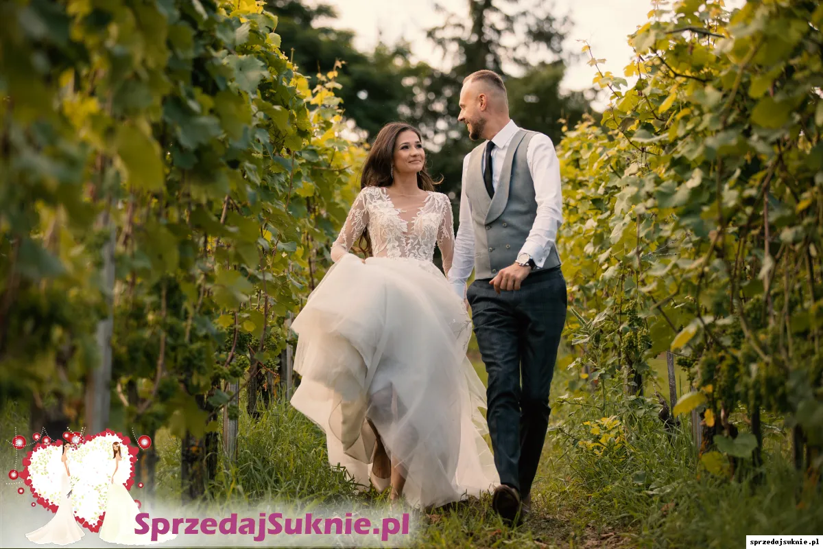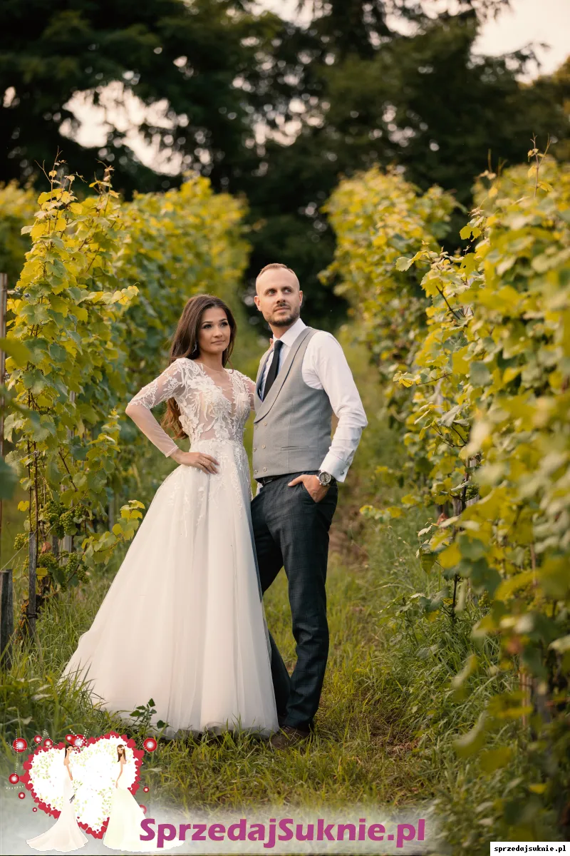 Sprzedaję dziś moją suknię ślubną, którą zakupiłam w salonie Lauren we Wrocławiu z firmy Dominiss: model Primula. Niesamowicie lekka i wygodna, z długim cienkim rękawem, wycięciem na plecach. Ma kilka warstw tiulu, halkę, usztywnienie na dole, dzięki czemu ładnie się rozkłada a co najważniejsze, nie przeszkadza i jest lekka w tańcu:) Jest wyprana w pralni, gotowa na sprzedaż.