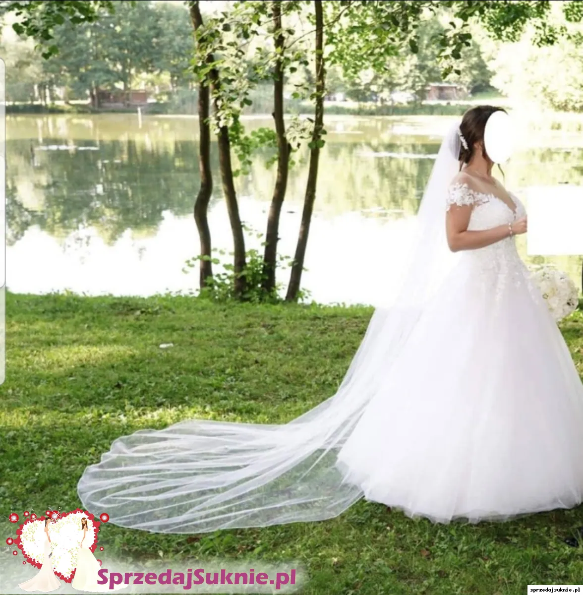 Do sukni mogę dołączyć długi, śnieżnobiały welon o długości 2,5 m., wykończony mereżką.