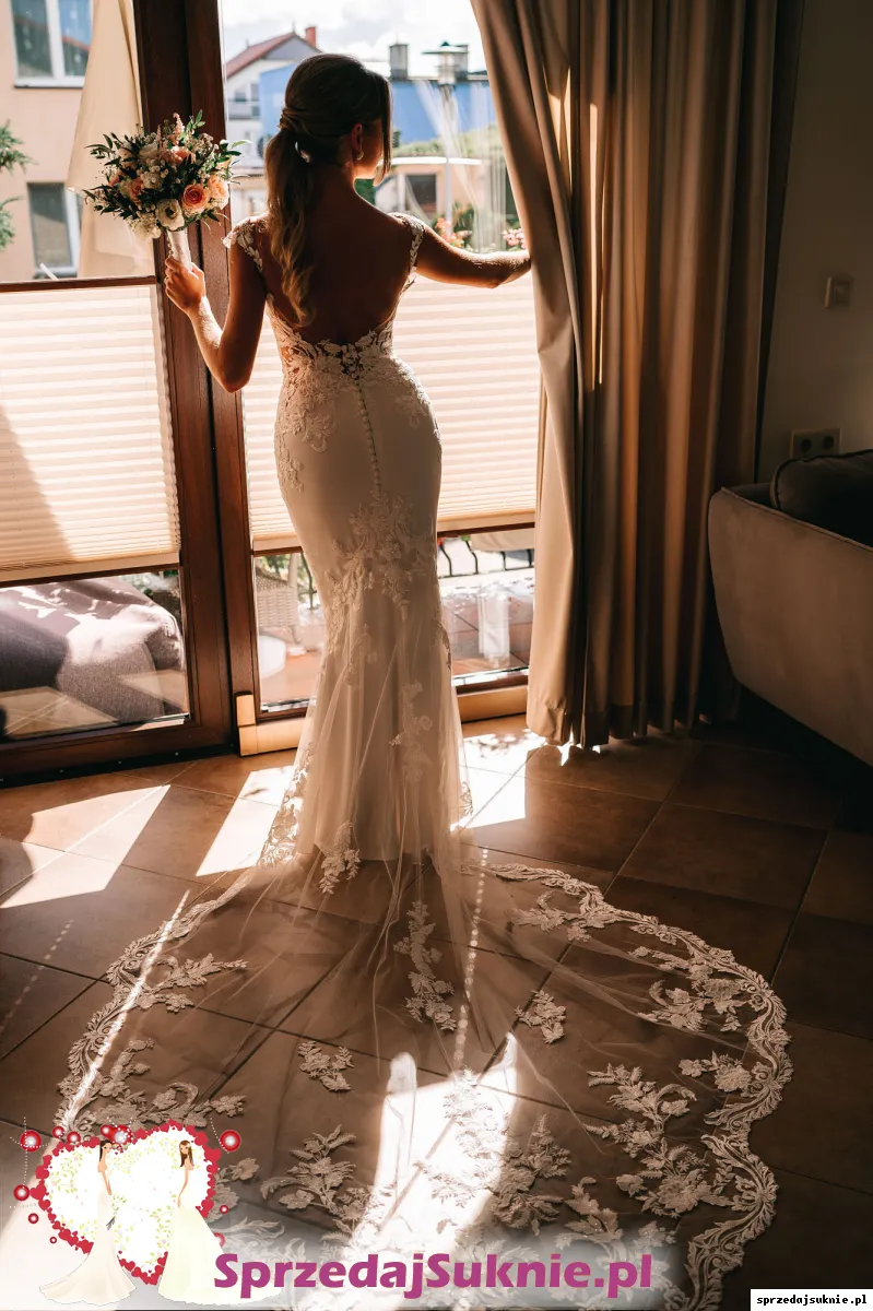 Bardzo oryginalna suknia. Ja mam wzrost 167 + w dniu ślubu miałam 9 cm obcas. Suknia jest wyprana oraz nie posiada żadnych wad. Kosztowała ponad 6 tys. Możliwość przymiarki w Koszalinie oraz w Trójmieście.