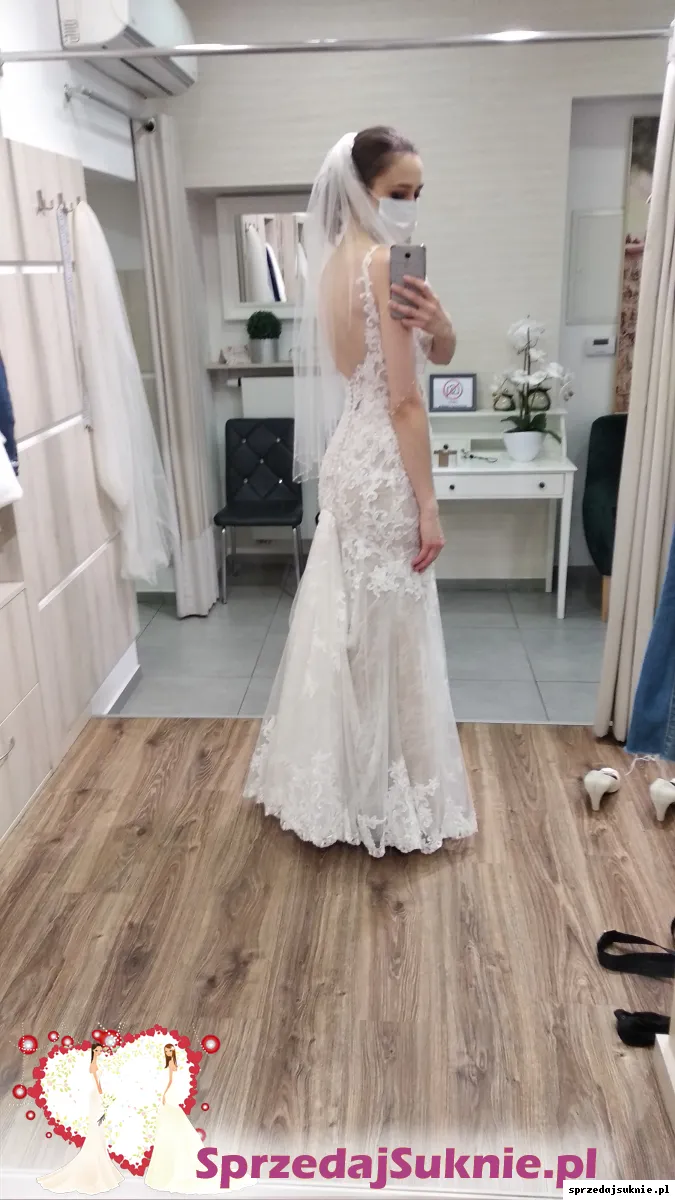Do sprzedania suknia ślubna w bardzo dobrym stanie (raz noszona). Suknia jest wyprana w pralni. Nie posiada śladów użytkowania. Długi tren podpinany jest na perłowe guziczki. Kolor ivory, rozmiar 34/36 na wysokość 170+10cm obcas. Cena salonowa 8000zł