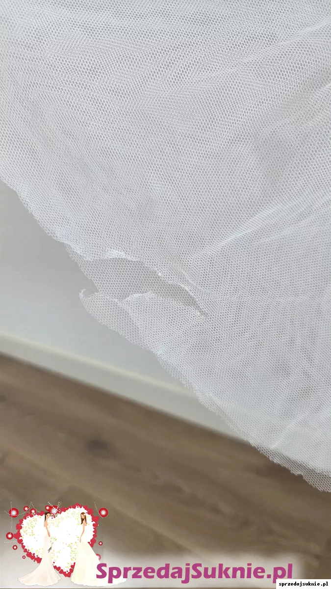 Dolna warstwa tiulu ma niewielkie rozprucie przy samym brzegu - bez problemu do skrócenia przy dopasowaniu długości, dzięki czemu suknia będzie idealna również dla niższej osoby.
