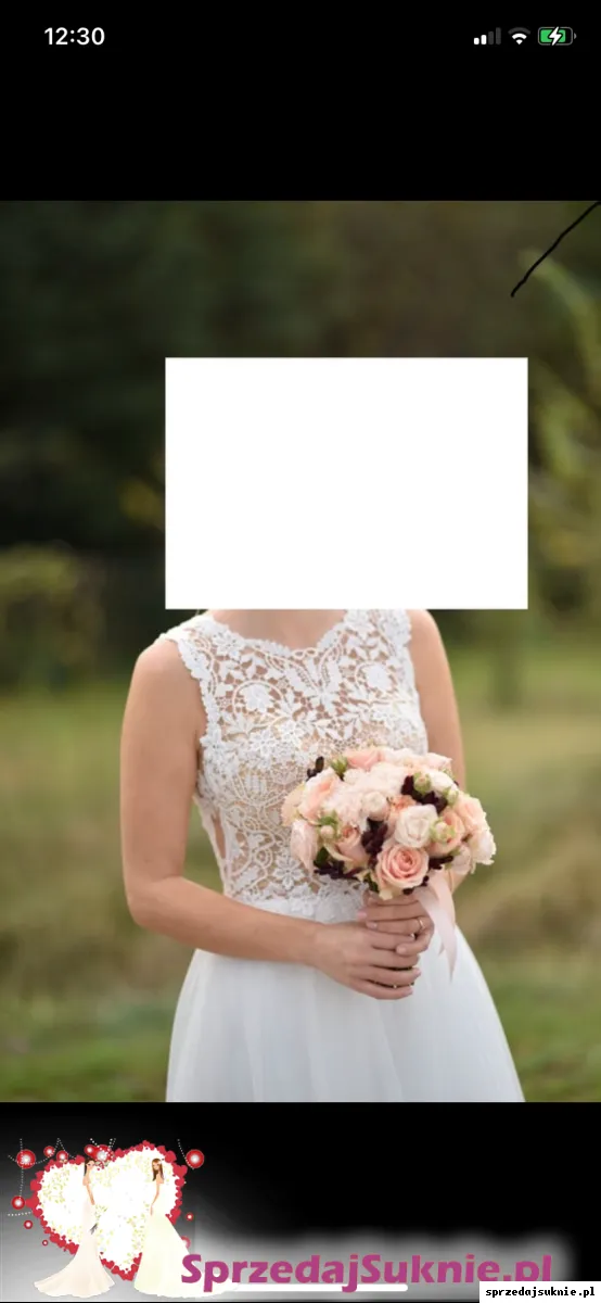 Mam do sprzedania suknie ślubną. Kupiona jako nową w 2020 r. niezniszczona. Muślinowy dół, u góry Koronka z dekoltem w łódkę. Rozmiar 37