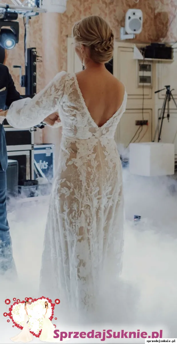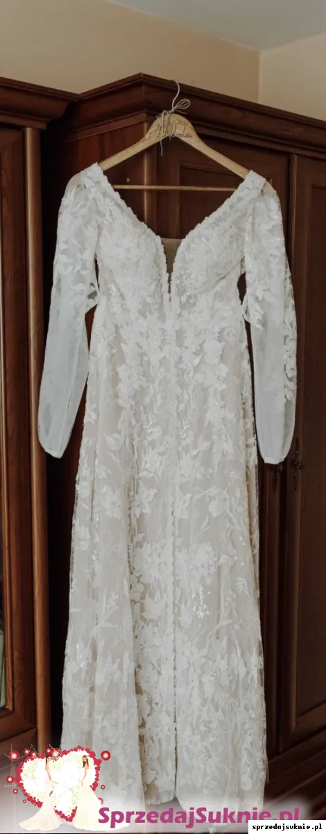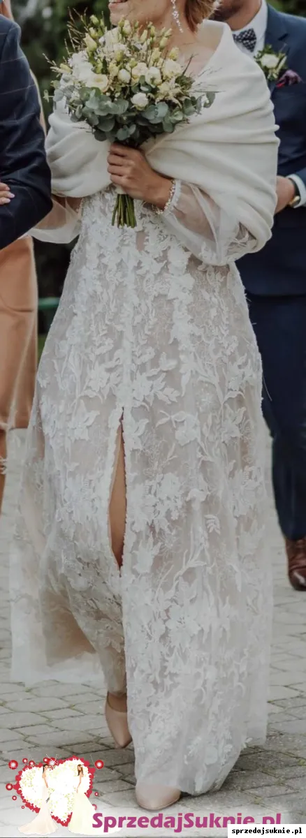 Suknia ślubna koronka litera A odpinane rękawy