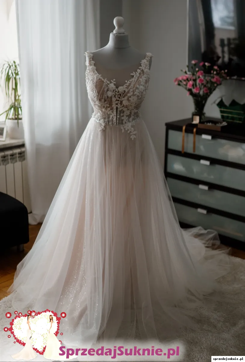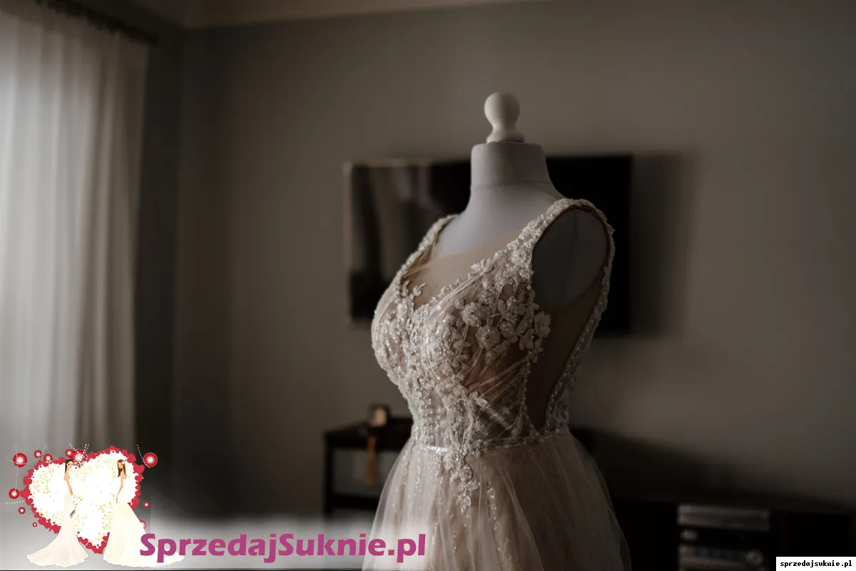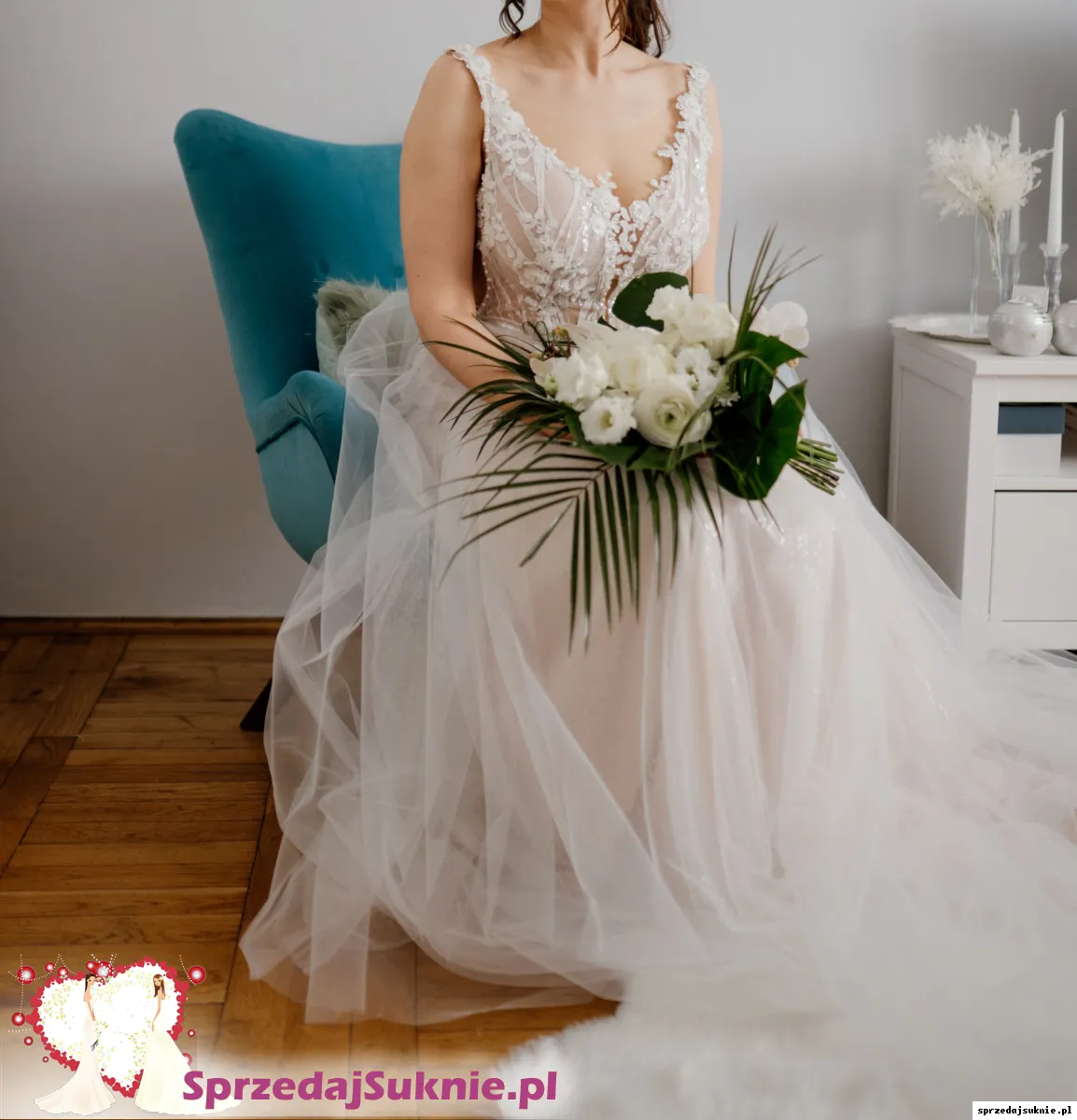 Do sprzedania suknia ślubna kupiona w salonie Madonna z kolekcji GABBIANO - 3003 AMORELLY w kolorze nude.