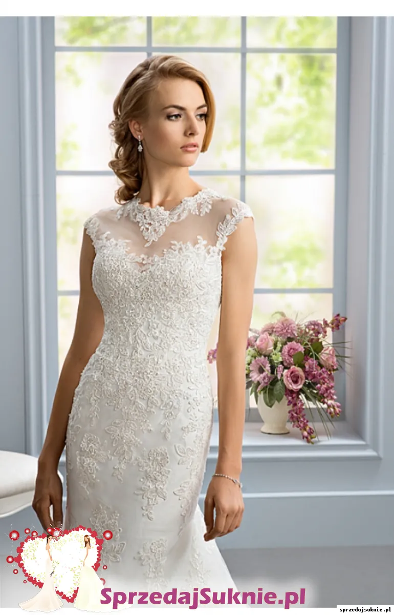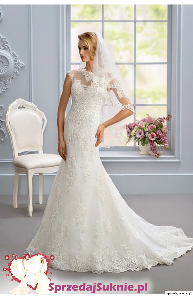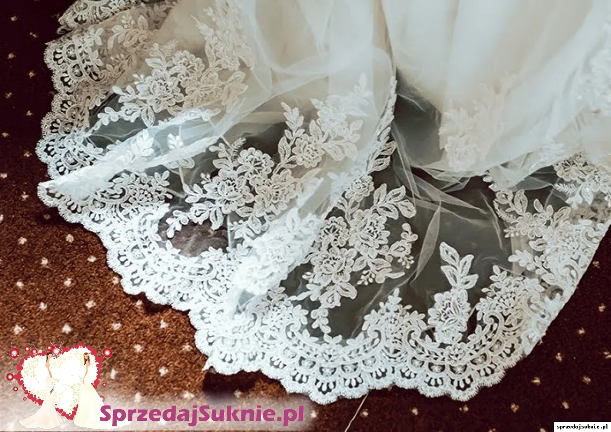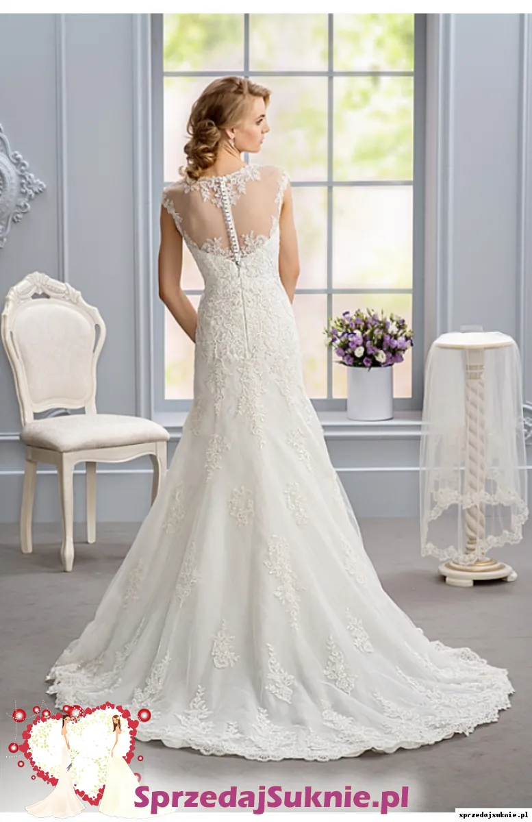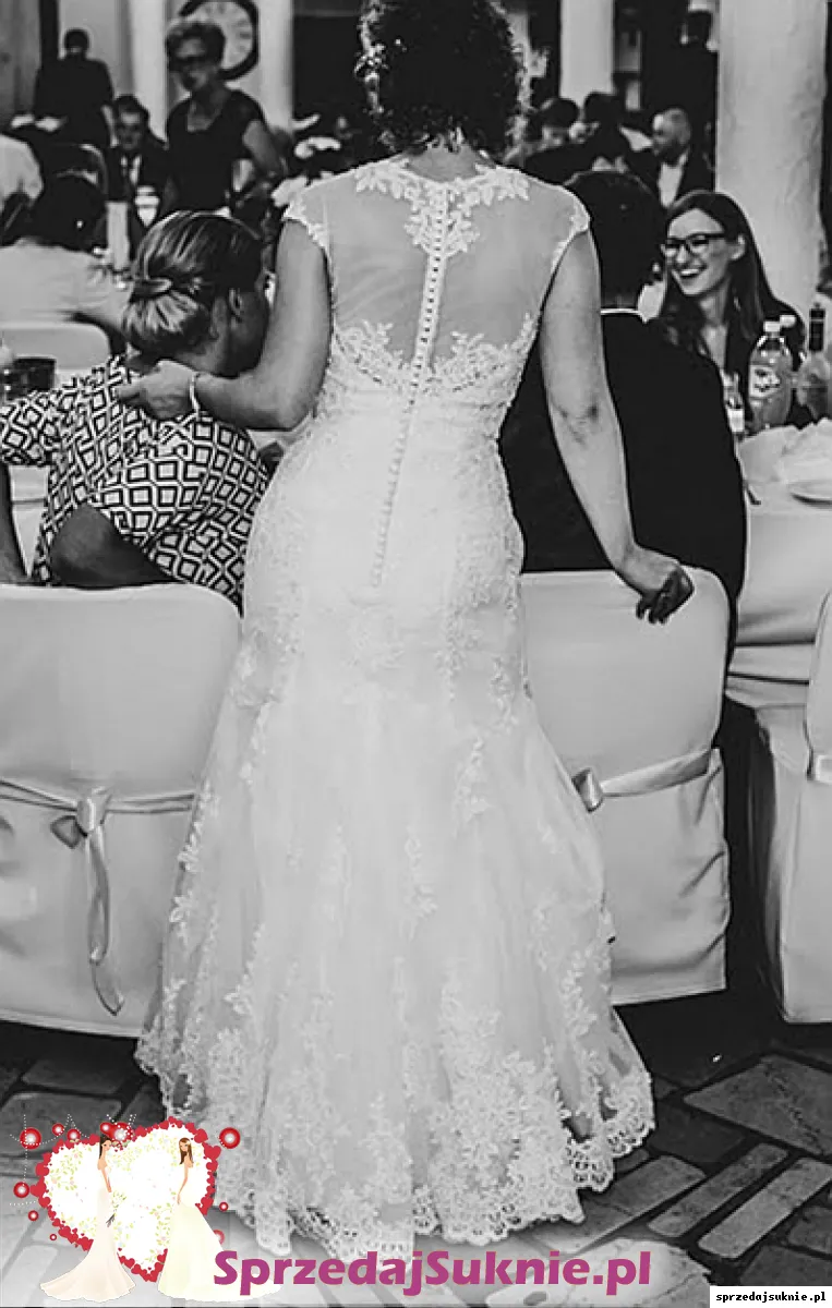 Kolor ivory, model delikatnej syrenki z podpinanym trenem. Sprzedawana bez welonu. Idealne sprawdziła się w części oficjalnej jak i tanecznej.