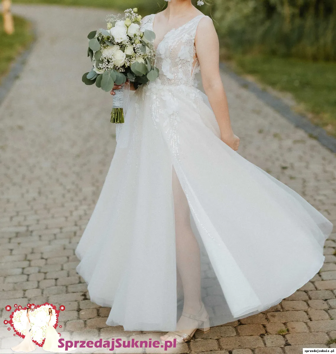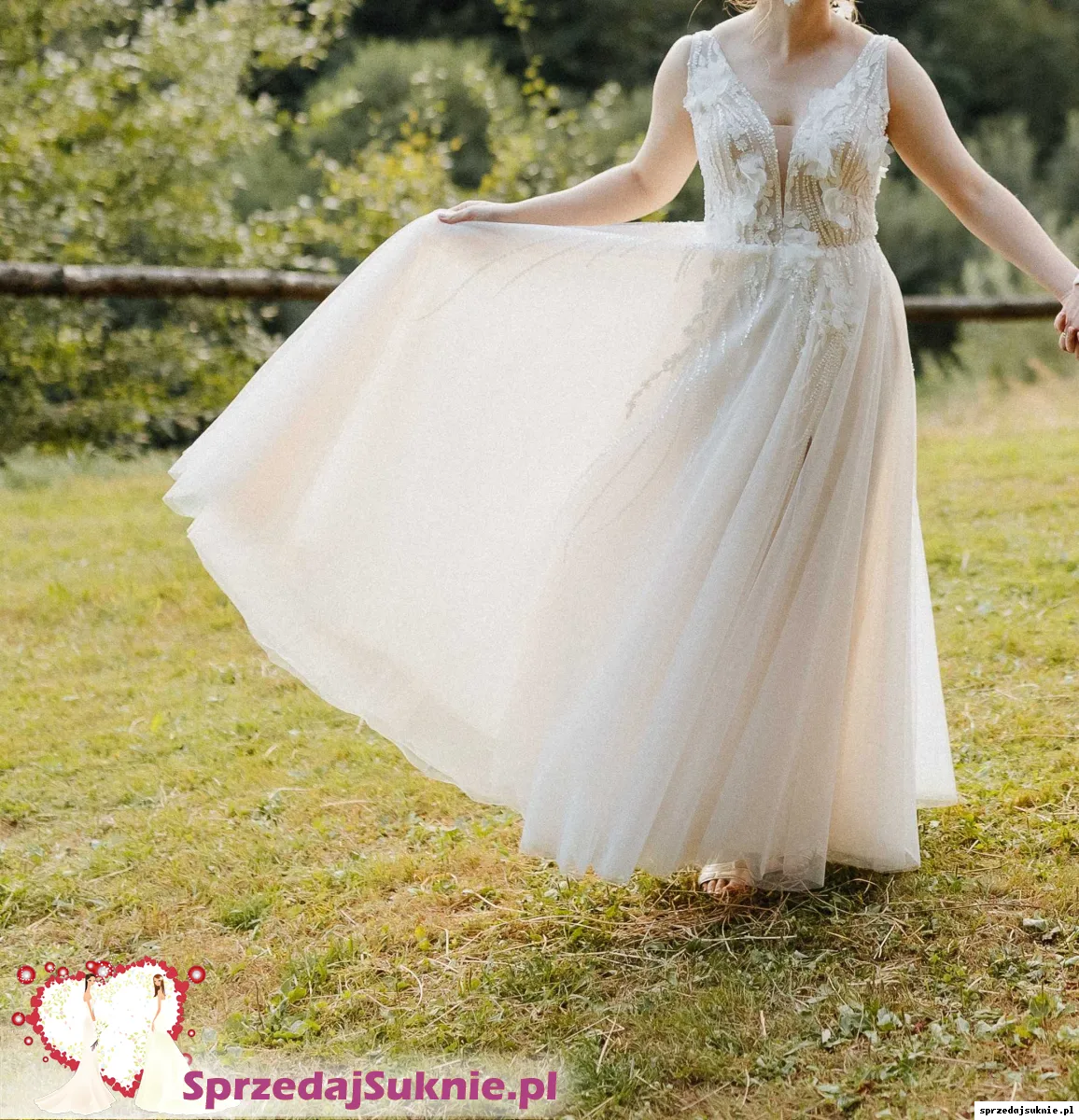 Suknia kupiona w Bielsku-Białej w salonie Divina Bridal w 2025 roku. Ubrana raz. Zapinana na zamek.