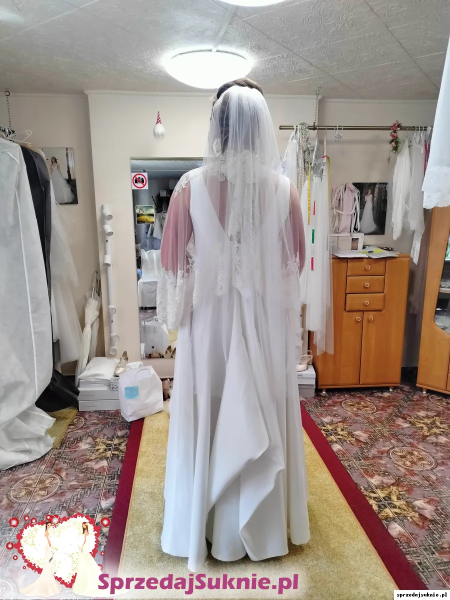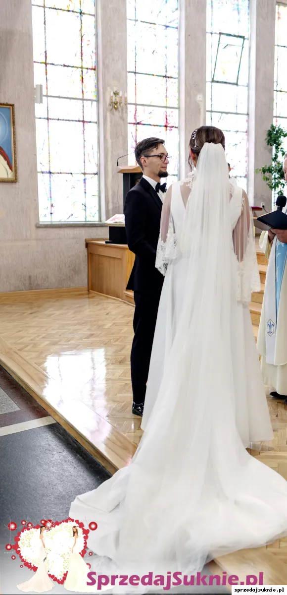 Sprzedam suknię ślubną zakupioną w zeszłym roku wyczyszczona , uszkodzenia naprawione nie widocznie, dodatkowo mogę dorzucić welon krótki. Suknia posiada teren podpinany od wewnątrz spokojnie utrzyma się całe wesele. Etole i długi welon sprzedam osobno. Wymiary na jednym ze zdjęć. Mam 174 wzrostu i w dniu ślubu miałam buty 8cm