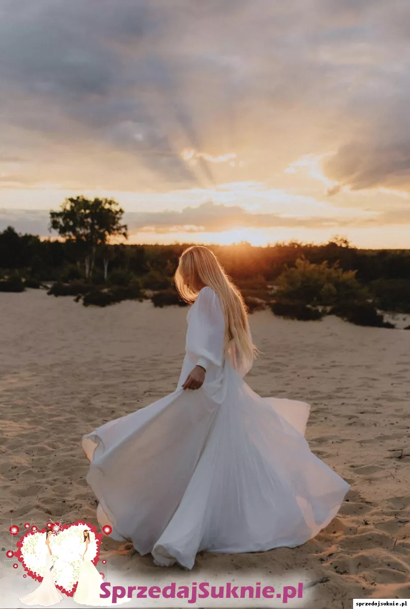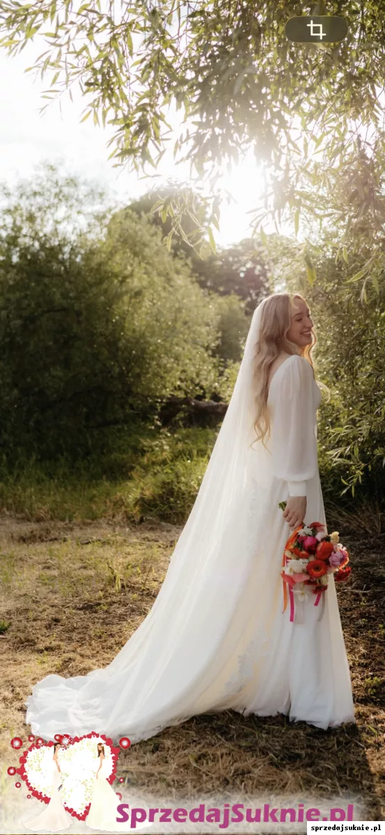 Przepi臋kna klasyczna suknia 艣lubna, kt贸ra wpisuje si臋 idealnie w r贸偶norodne style wesela. Moje wesele by艂o w stylu boho i pi臋knie wsp贸艂gra艂a z naszym przewodnim tematem wesela. Suknia jest klasyczna, prosta, bardzo elegancka i ponadczasowa.
