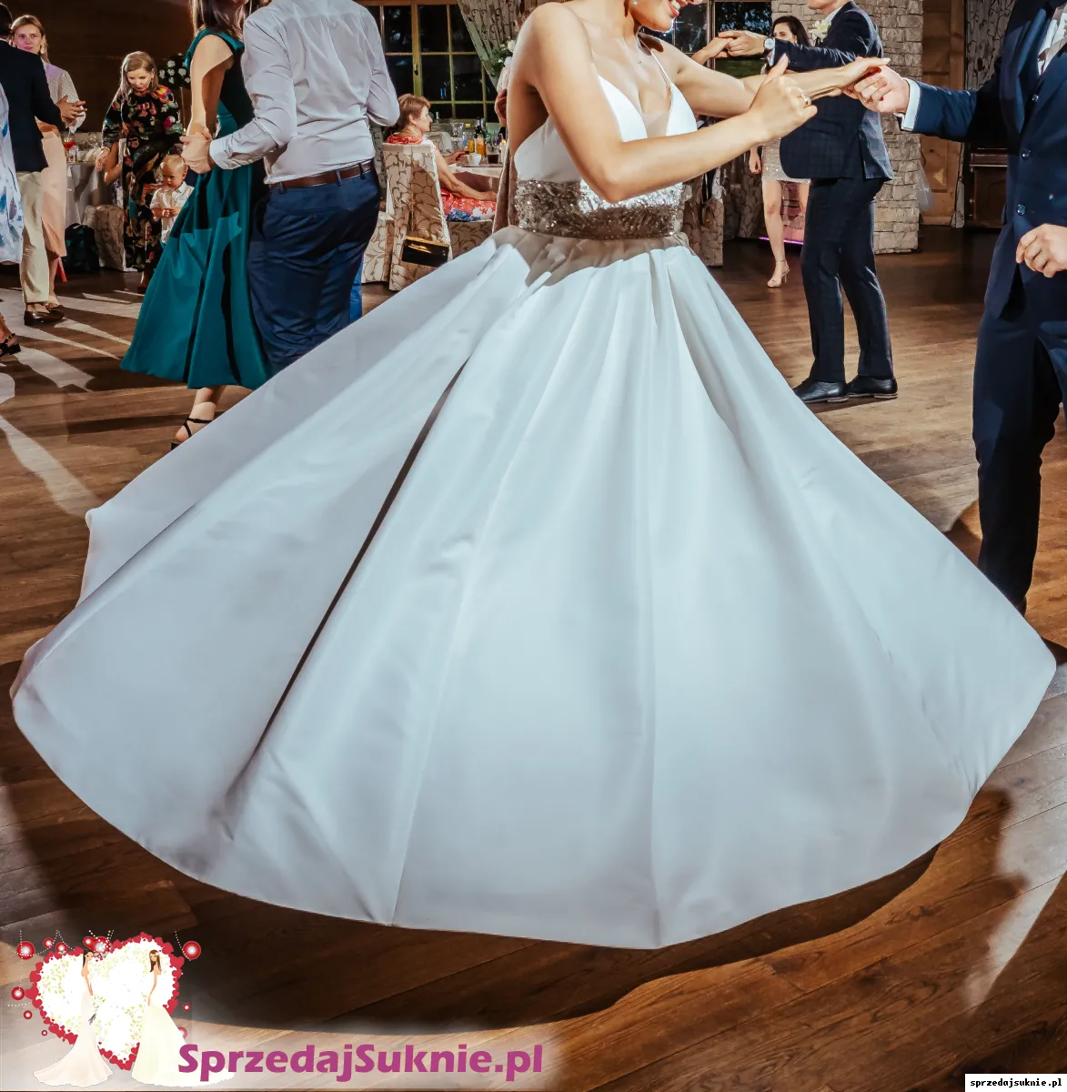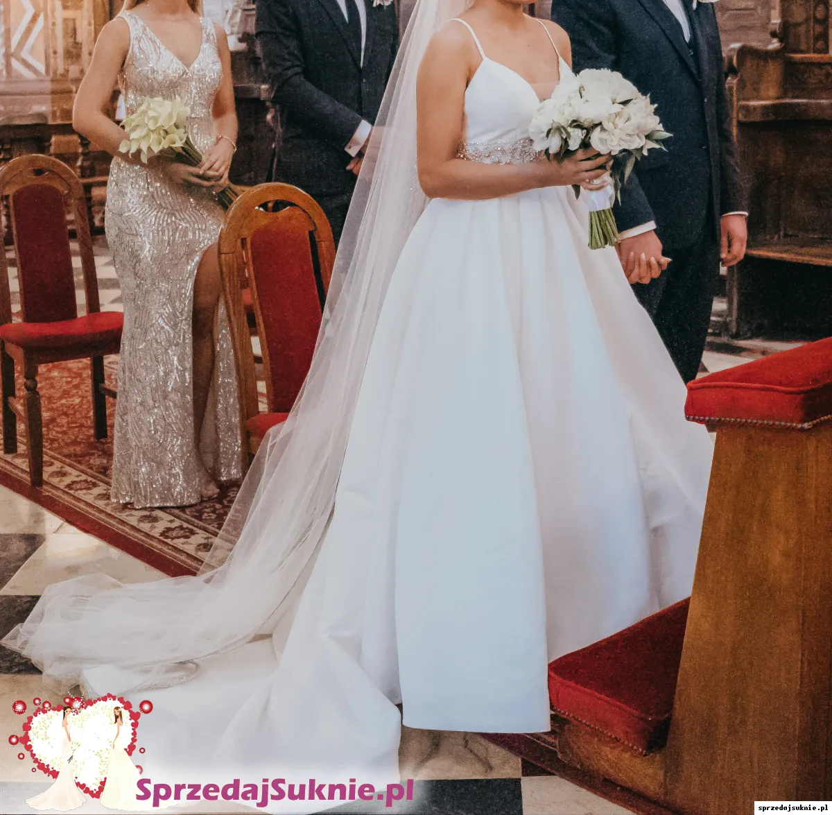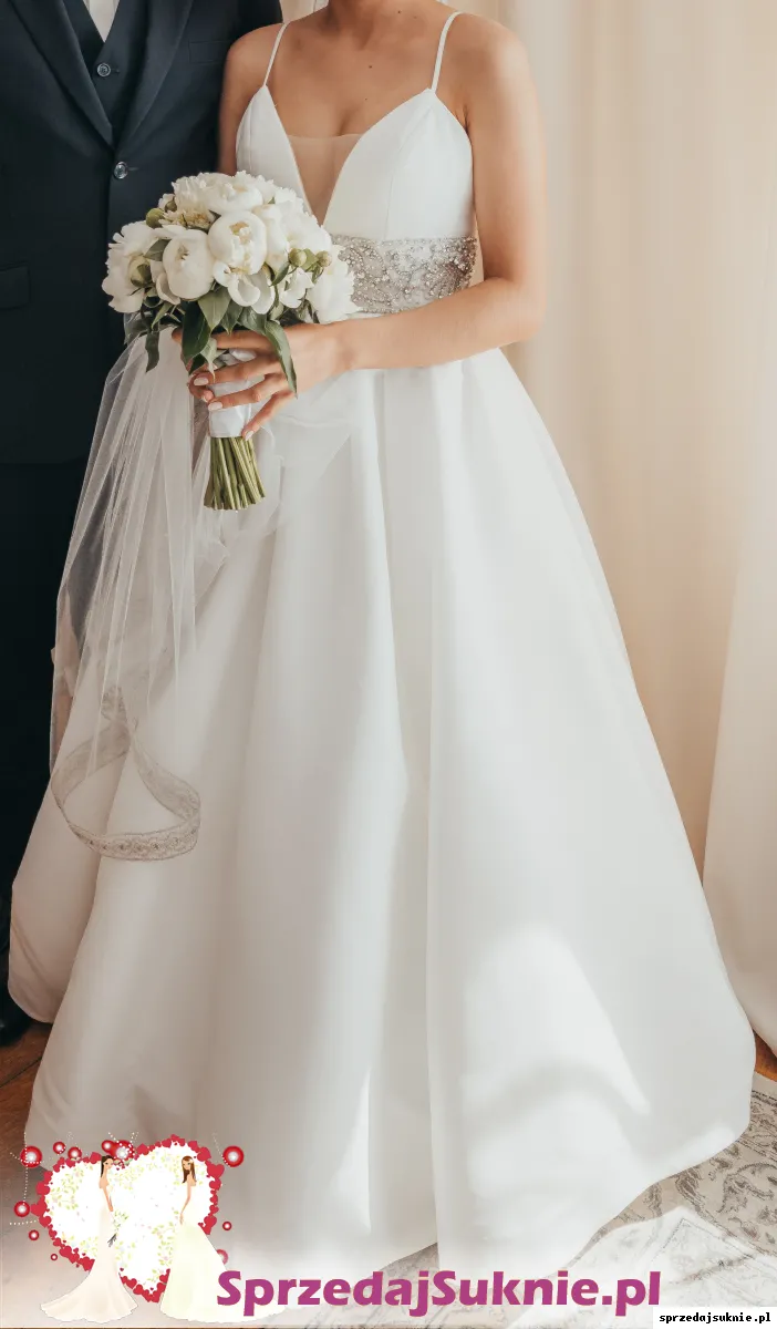 Suknia 艣lubna, Justin Alexander Signature, wysadzana kryszta艂kami Swarovskiego.