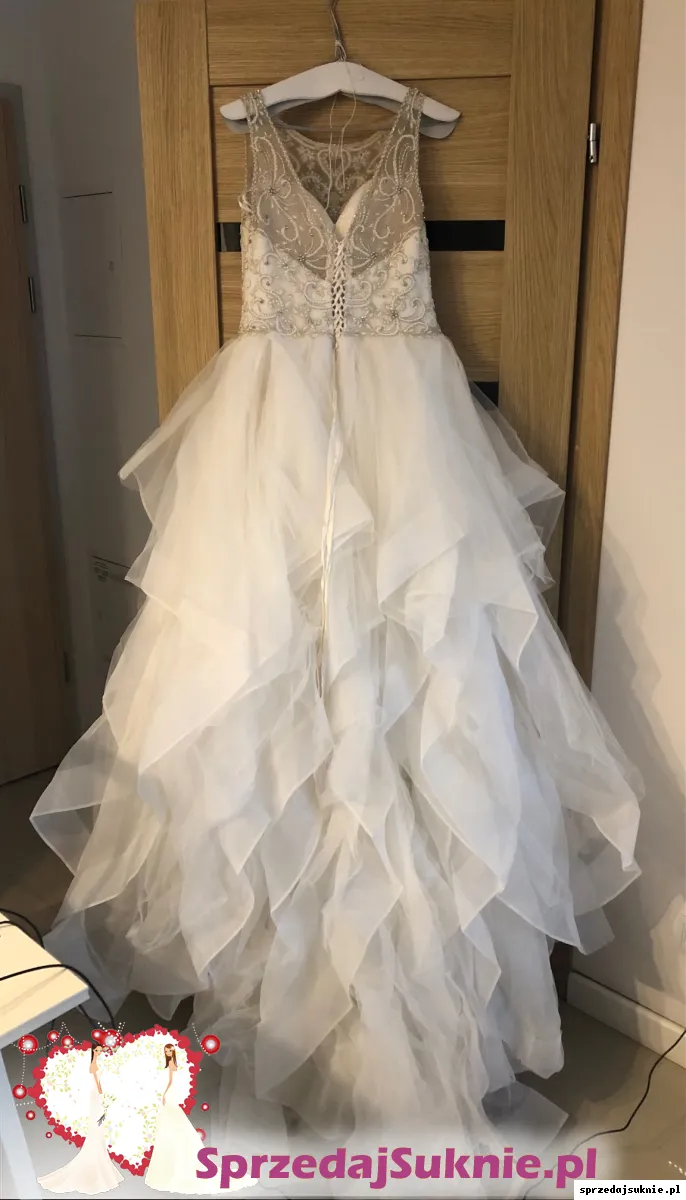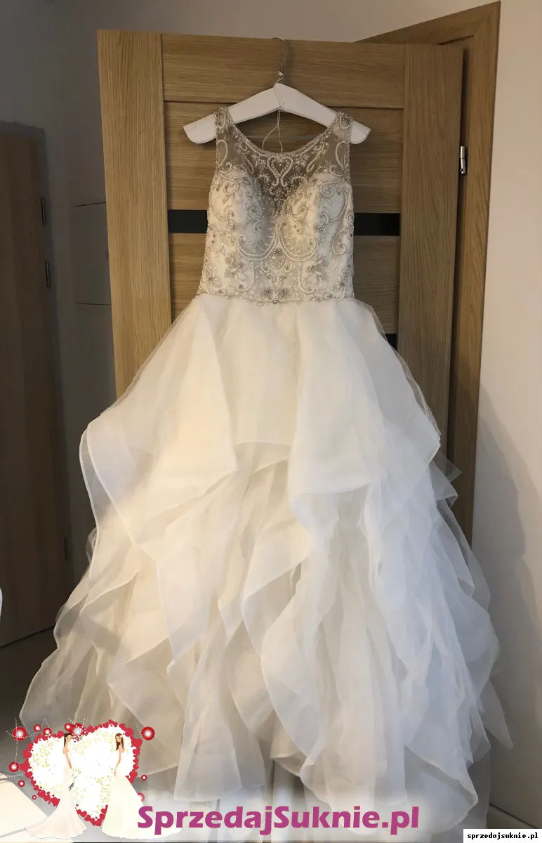 Justin Alexander 9847 oryginał Sprzedam oryginalna suknie ślubna Justin Alexander model 9847. Suknia zakupiona w Salonie w Krakowiekdjd. Stan bardzo dobry. Suknia z trenem na wzrost 174 plus 7cm obcas, mozna przyciac ewentualnie jak na nizsza osobe. Do chemicznego prania - nie byla prana po weselu dlatego atrakcyjna cena. Zalozona na slub i wesele. Zabrudzenia dolem normalne uzytkowe ze wzgledu na dlugo tren. Do wyprania oraz poprawek krawieckich. Zmiana z Guzikow z tylu na wiazanie - mozna dopasowac dokladnie suknie, wszyte miseczki. Kolor: ivory, sand, silver. Cudowna suknia , prezentuje sie fenomenalnie. Pas trzymający suknie na biodrach - wygodna i dobrze trzyma się cały cZas. Cena zakupu : 7000zl . Sprzedaje za 1/5 ceny zakupu. Rozmiar od 38-42. - dzieki wiazanemu gorsetowi z tylu , zmienilan w sukni celem dokladnego dopasowania do ciala. Spektakularny efekt koncowy. Mozliwosc przymiarki w Krakowie.