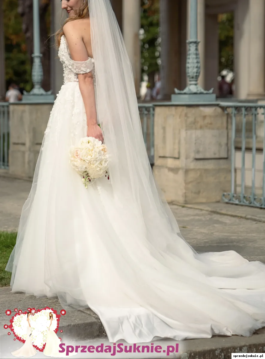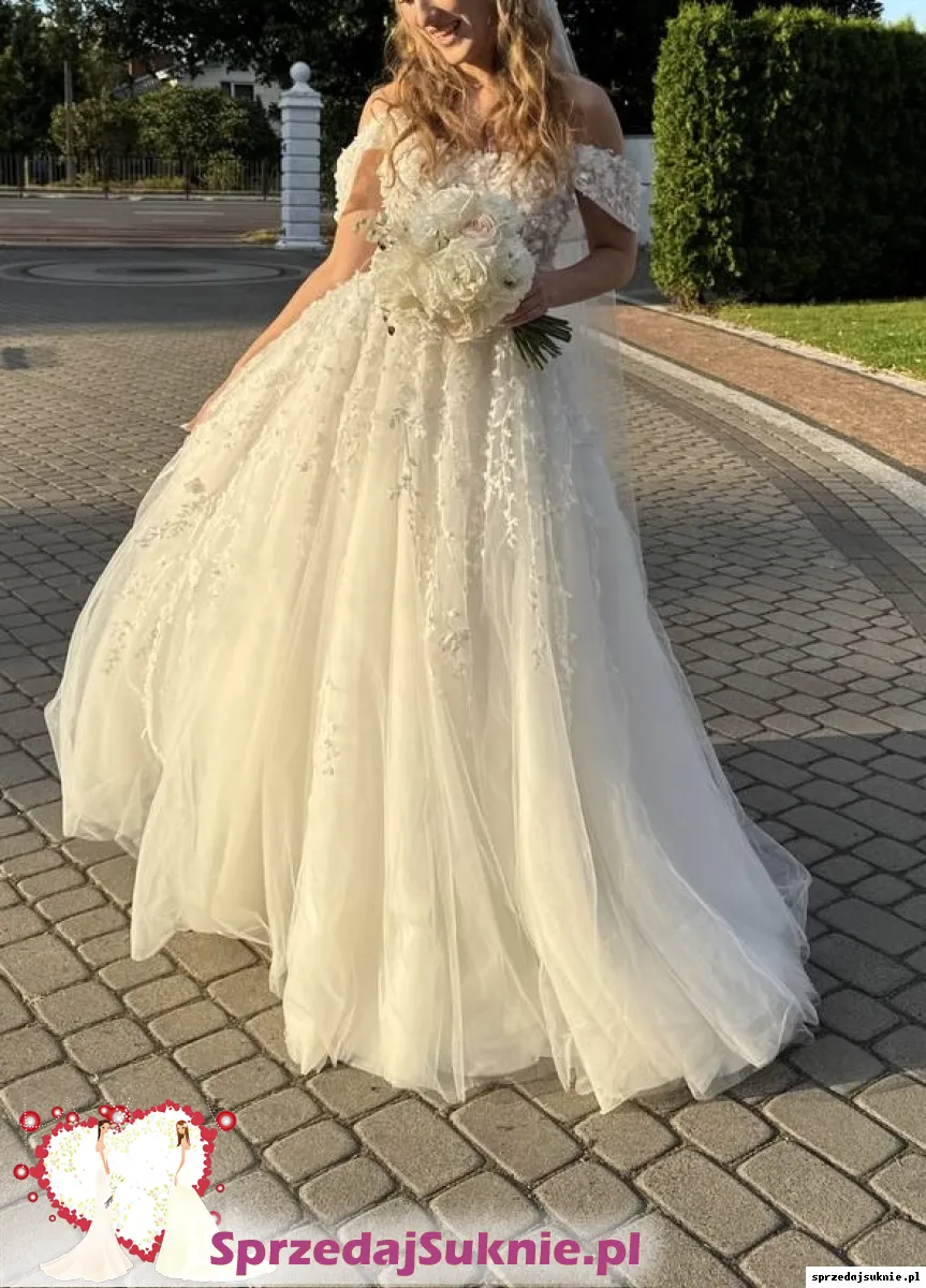 Elegancka suknia ślubna z odkrytymi ramionami – ivory