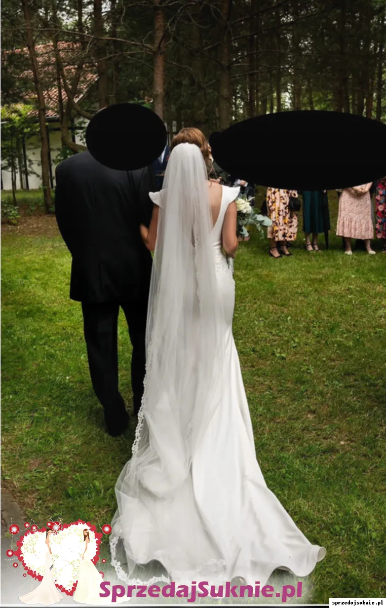 Odsprzedam również welon długi, gładki, obszyty koronką.