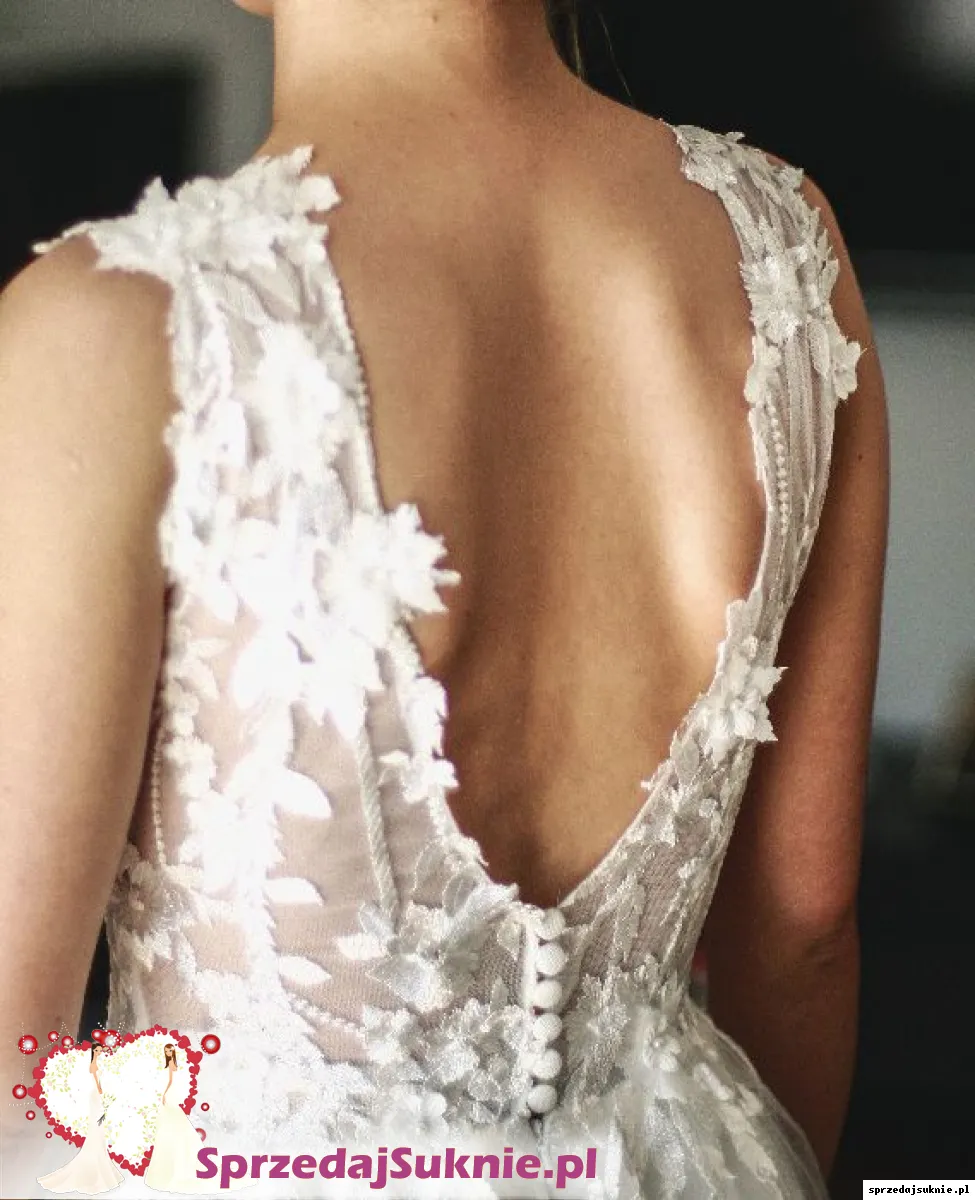 Witam! Sprzedam suknię ślubną zakupioną w salonie Valdi Bride, na ul. Długiej w Krakowie. Jest to model Una w kolorze śmietankowym. Rozmiar 36, wzrost 168 cm plus obcas 5cm, długość do ziemi, zakrywająca buty. Suknia ma piękny dekolt w kształcie litery V oraz wycięty tył pleców. Góra koronkowa, wyszywana w drobne kwiaty, posiada usztywniony biust z efektem push-up. Dół to gładka podszewka, a na zewnątrz delikatny tiul bez zdobień. Do tego dorzucam gładki welon do pasa, na grzebyku. Suknię można zmierzyć w Krakowie w dzielnicy Mistrzejowice lub w Miechowie i okolicach. Możliwa także wysyłka. W razie pytań proszę o wiadomość przez portal lub telefon. Zapraszam!!!