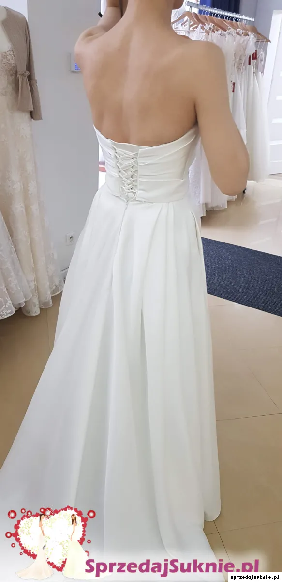 Sprzedam moją suknię ślubną – elegancką, minimalistyczną, w kolorze ivory.