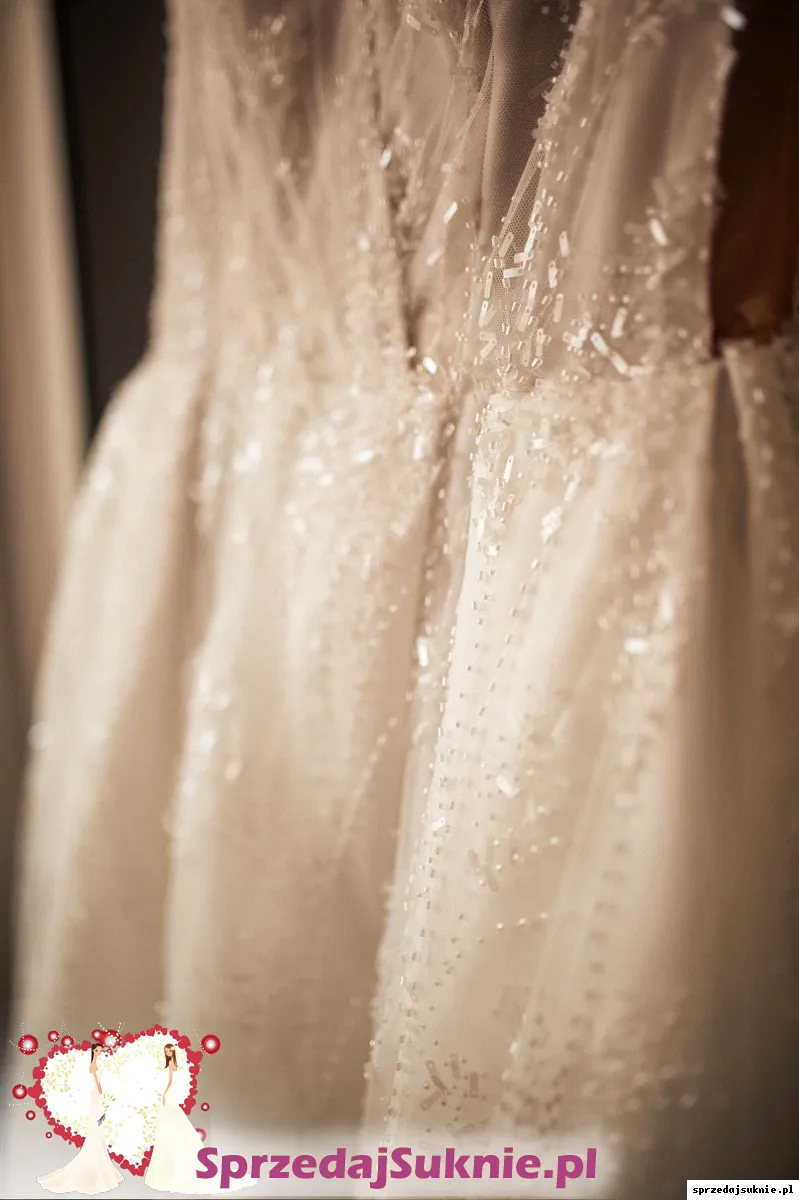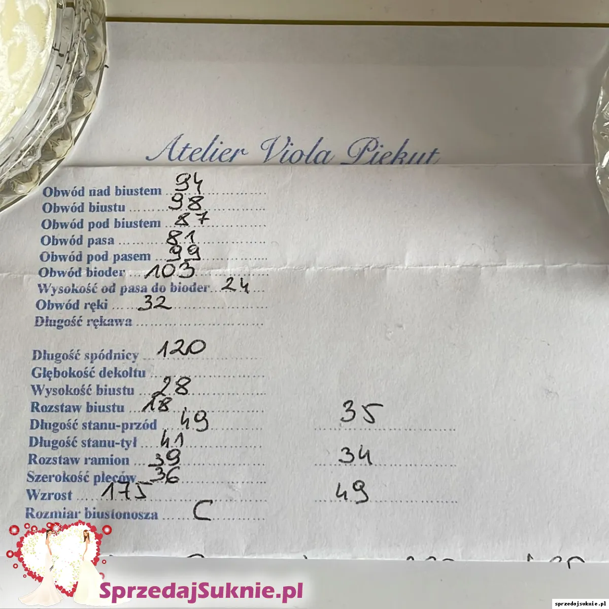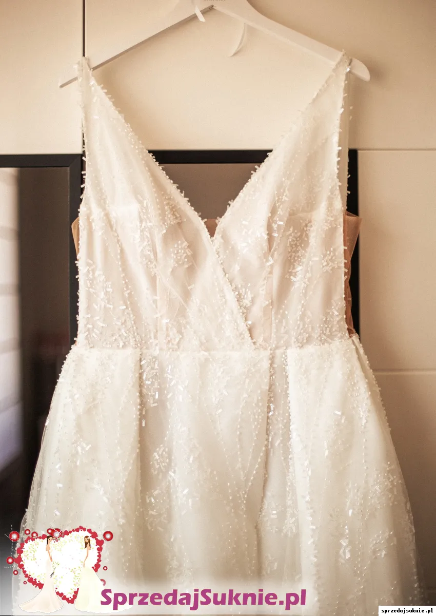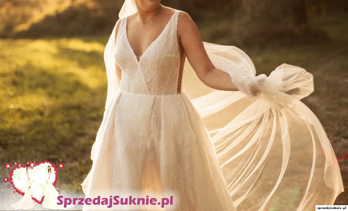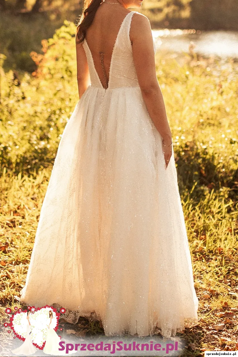 Suknia ślubna model Denver (kolekcja 2023) szyta na miarę w Atelier Viola Piekut. Dokładne wymiary na ostatnim zdjęciu. Założona na kilka godzin podczas wesela i na krótką sesję. Stan idealny, brak uszkodzeń. Posiada rozcięcie na prawej nodze, suwak pod guzikami z tyłu. Ręcznie wyszywana, pięknie się układa. Mogę podesłać więcej zdjęć.